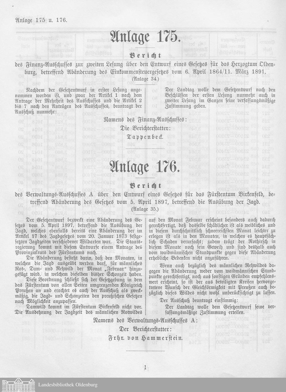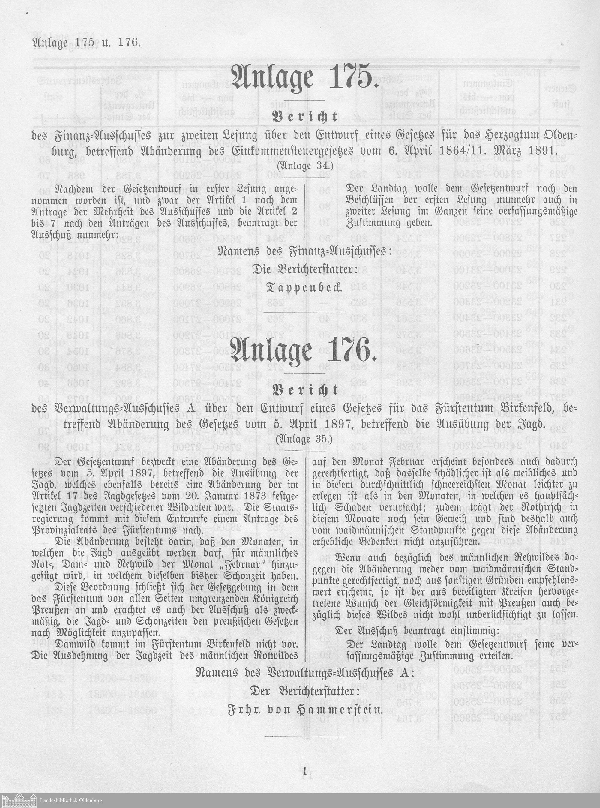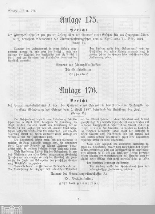 Verhandlungen der ... Versammlung des ... Landtags des Freistaats Oldenburg / Anlagen zu den Niederschriften und Berichten / Anlagen zu den Protokollen und Berichten