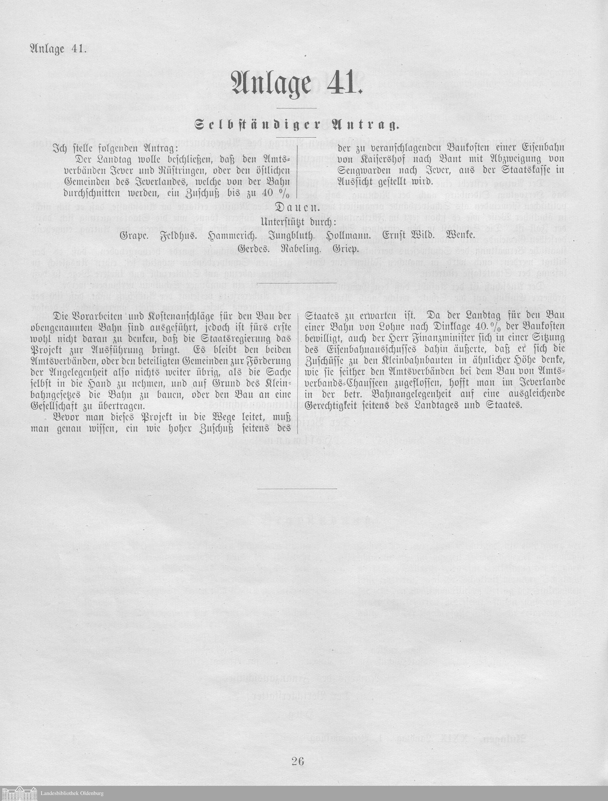 Verhandlungen der ... Versammlung des ... Landtags des Freistaats Oldenburg / Anlagen zu den Niederschriften und Berichten / Anlagen zu den Protokollen und Berichten