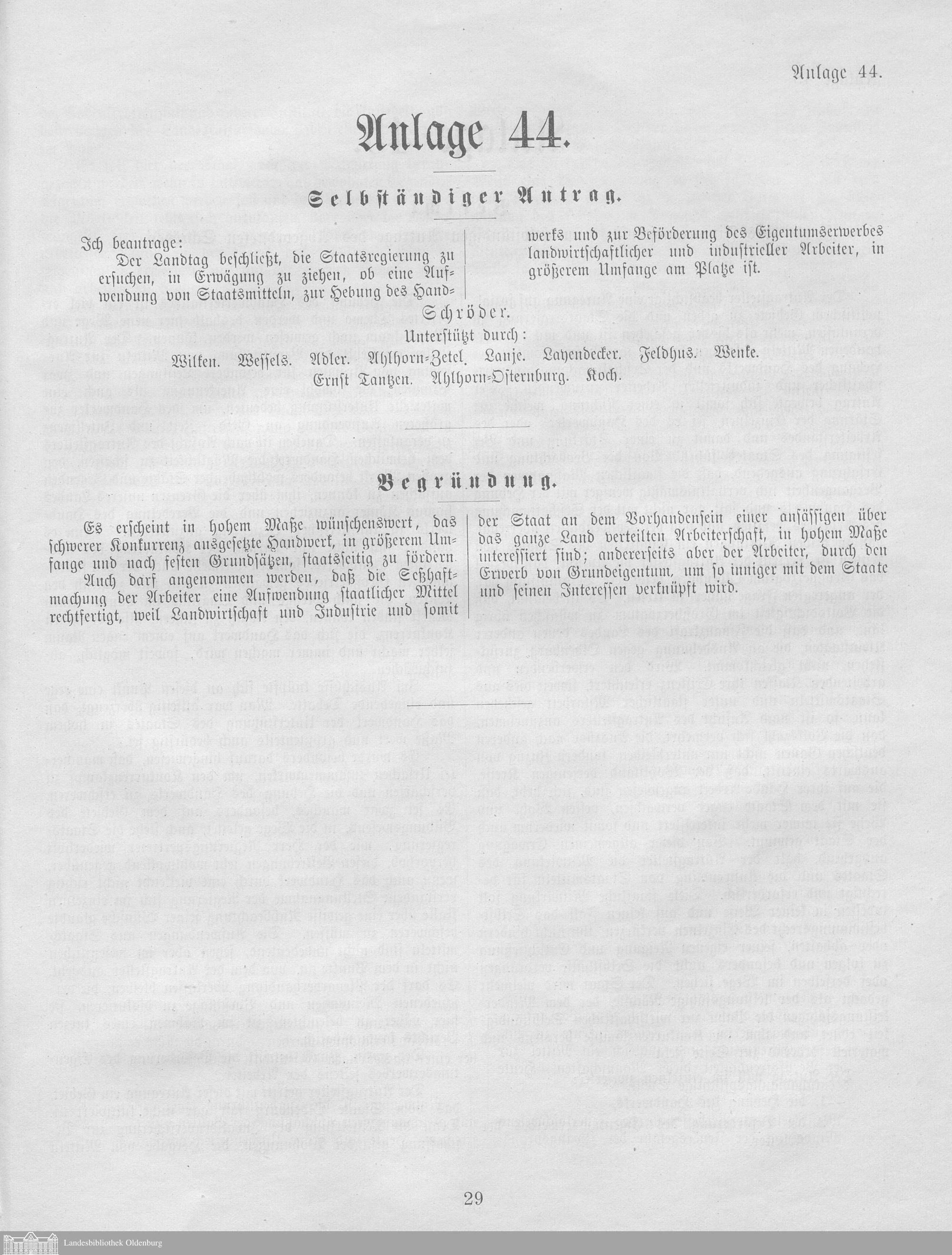 Verhandlungen der ... Versammlung des ... Landtags des Freistaats Oldenburg / Anlagen zu den Niederschriften und Berichten / Anlagen zu den Protokollen und Berichten