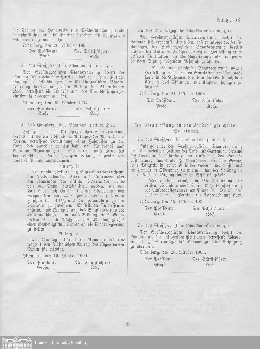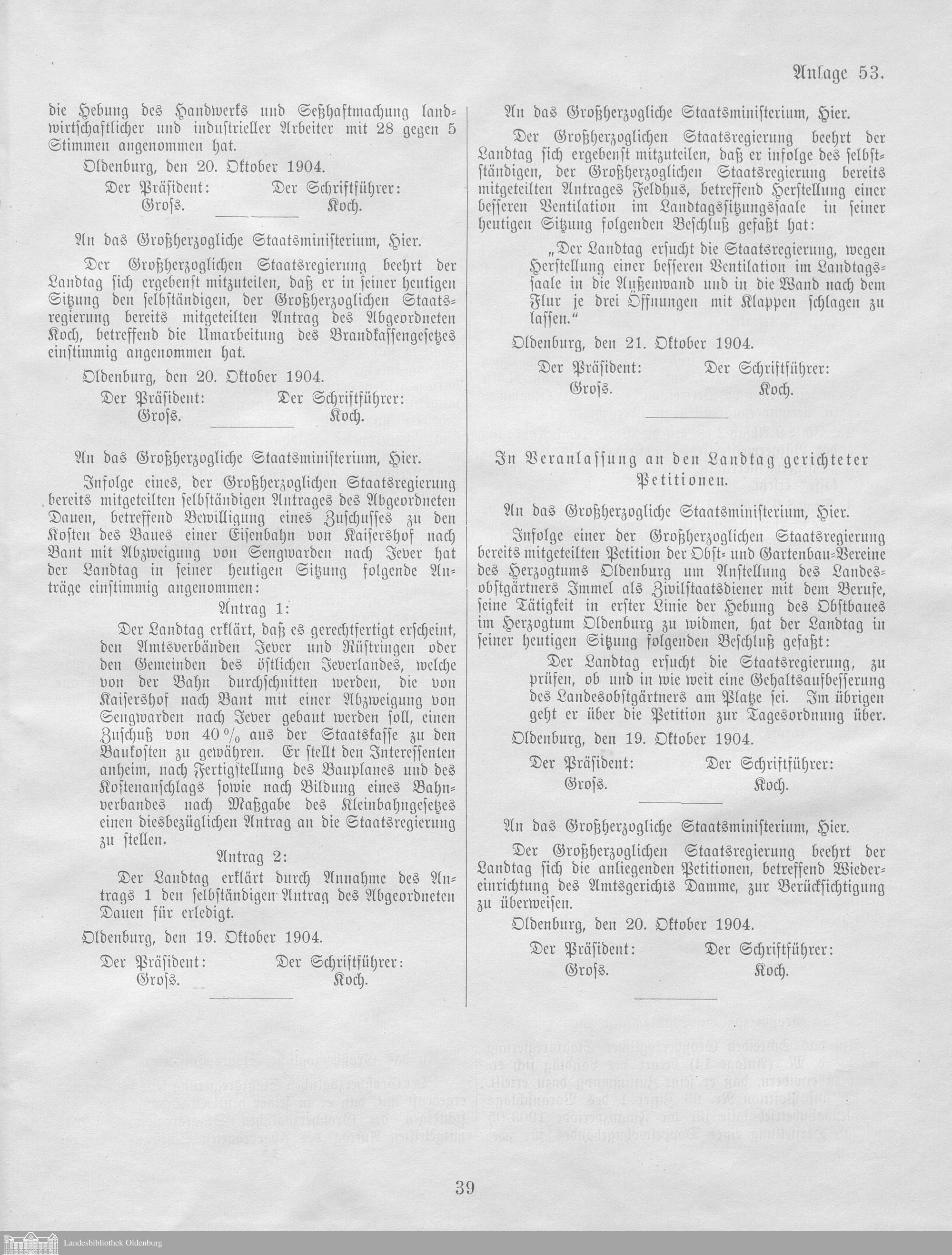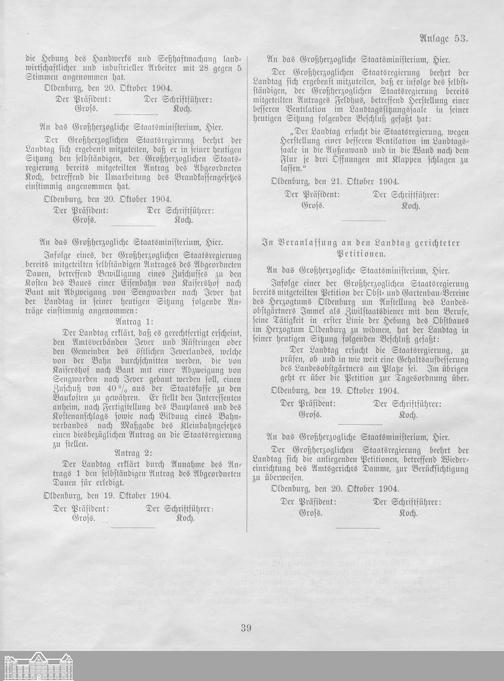 Verhandlungen der ... Versammlung des ... Landtags des Freistaats Oldenburg / Anlagen zu den Niederschriften und Berichten / Anlagen zu den Protokollen und Berichten