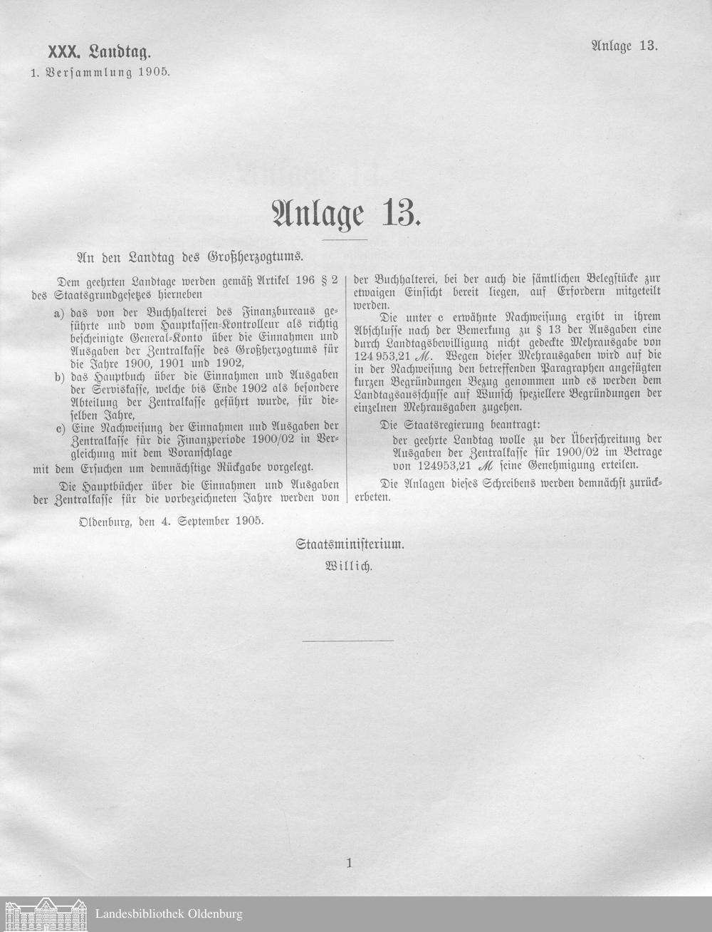 Verhandlungen der ... Versammlung des ... Landtags des Freistaats Oldenburg / Anlagen zu den Niederschriften und Berichten / Anlagen zu den Protokollen und Berichten