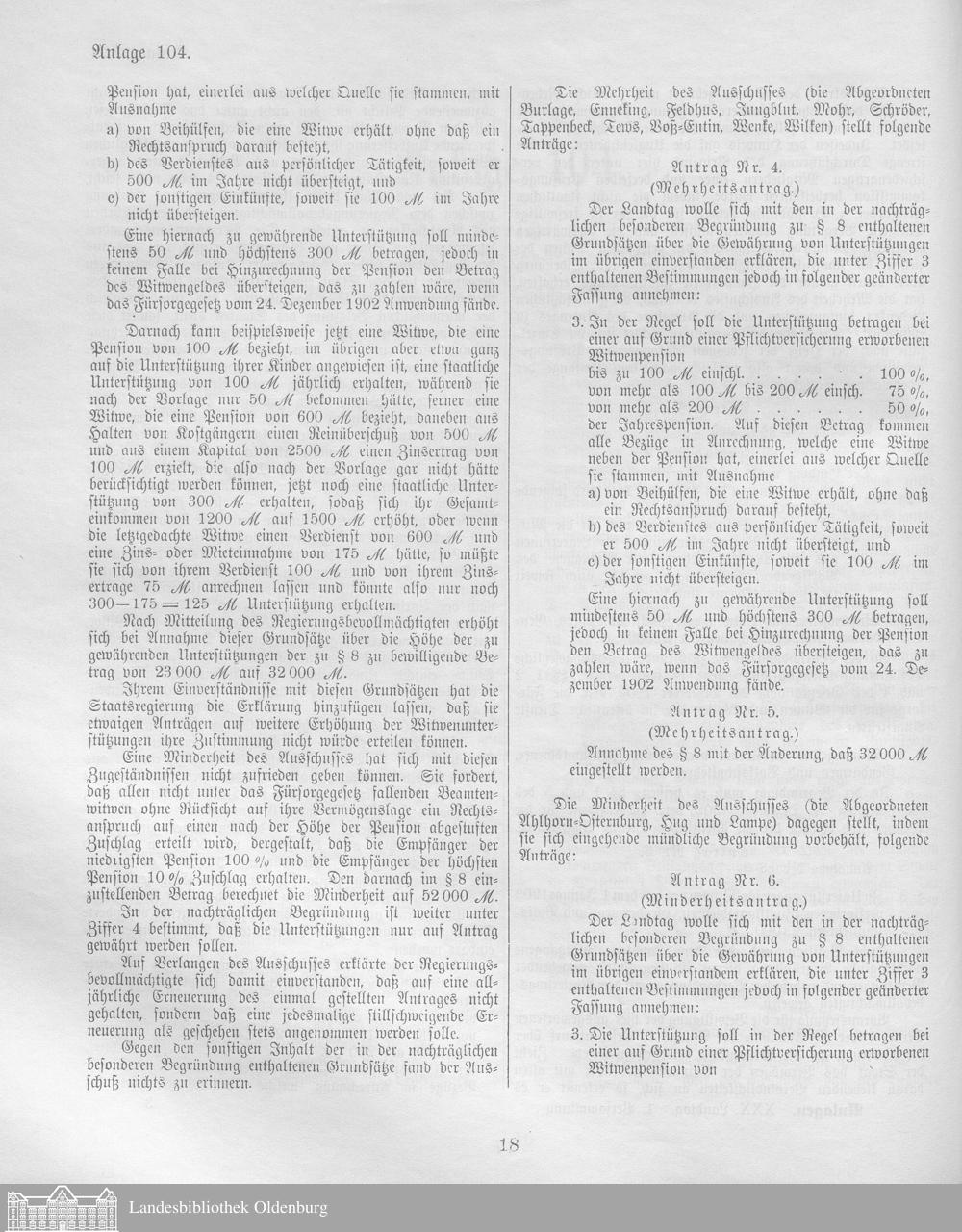 Verhandlungen der ... Versammlung des ... Landtags des Freistaats Oldenburg / Anlagen zu den Niederschriften und Berichten / Anlagen zu den Protokollen und Berichten