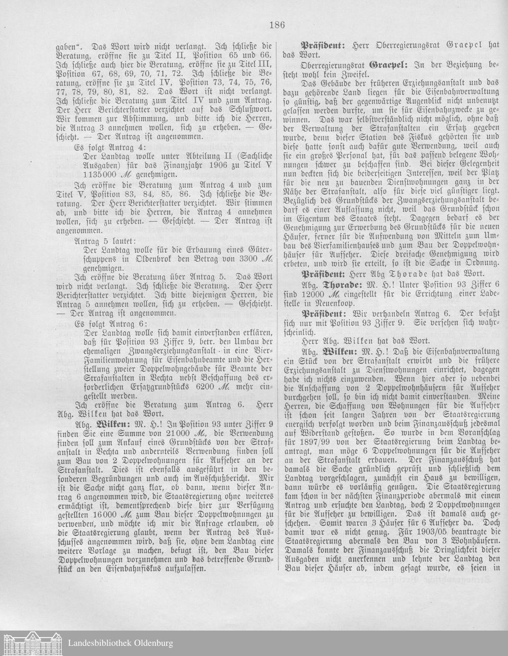 Verhandlungen der ... Versammlung des ... Landtags des Freistaats Oldenburg