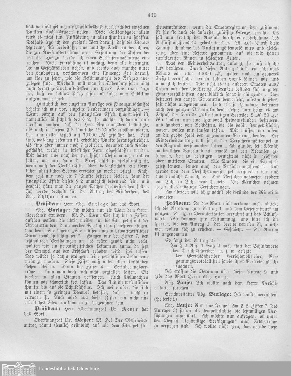 Landtag 1.1849 - 6.1852; 30.1905/08 - 33.1916/19; 1.1919/20 - 5.1928/30[?], 1849-1930