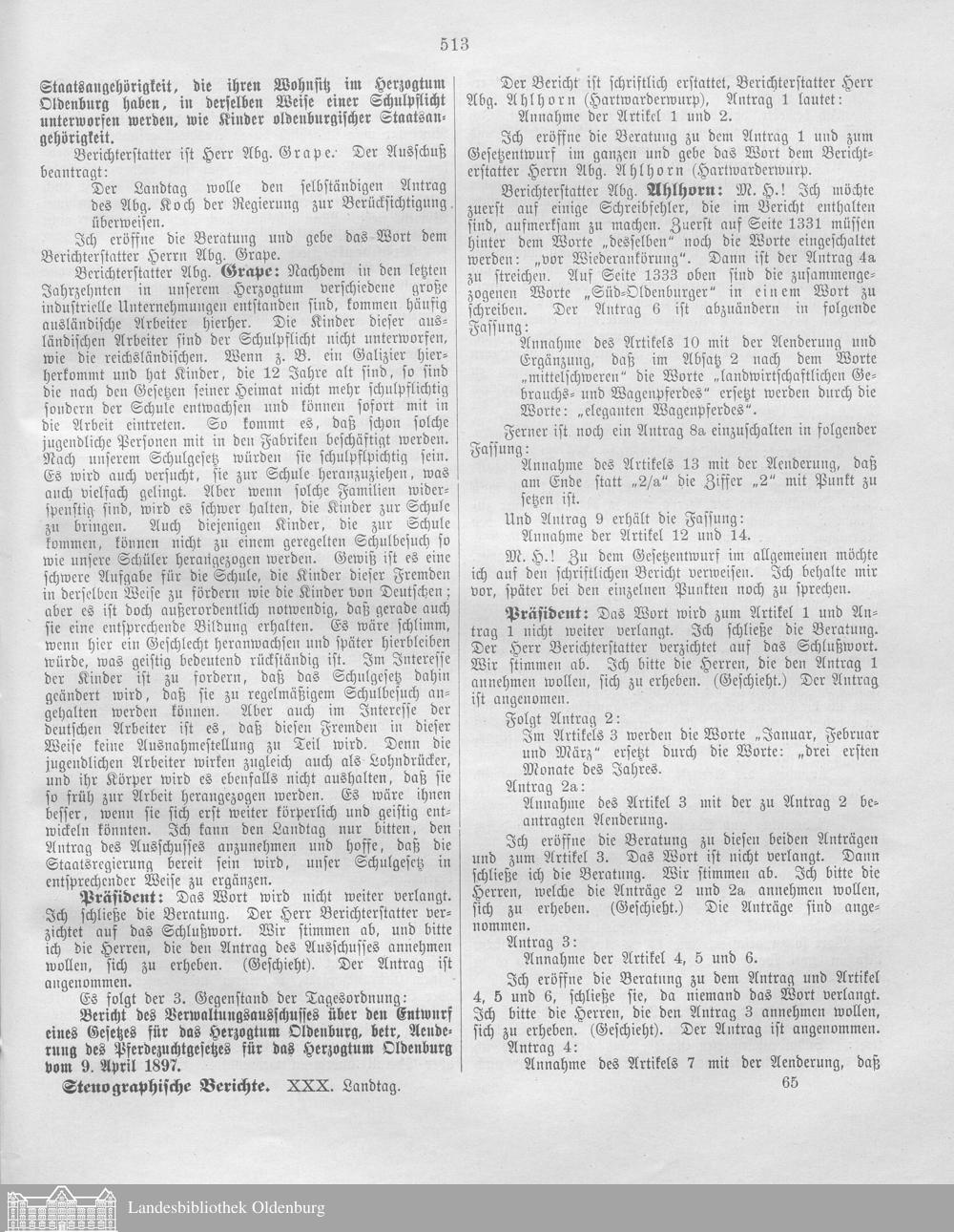 XXX. Landtag 07.11.1905-27.03.1908