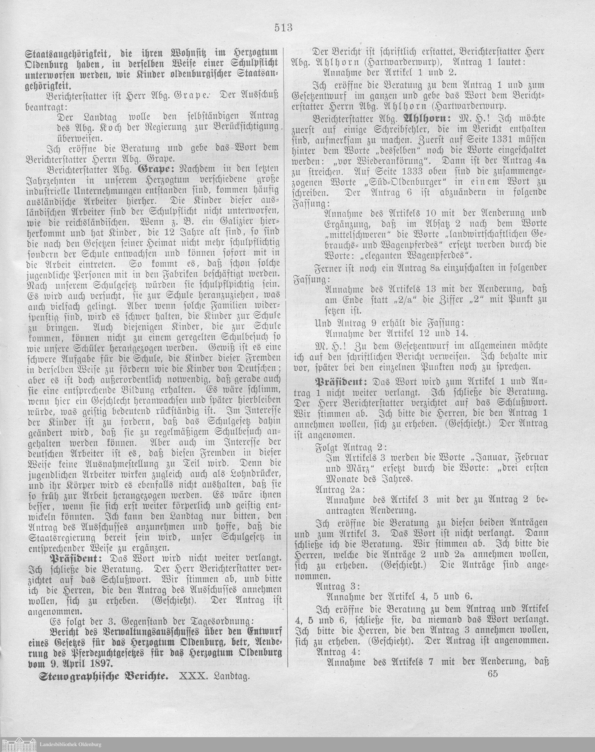 Verhandlungen der ... Versammlung des ... Landtags des Freistaats Oldenburg / Stenographische Berichte