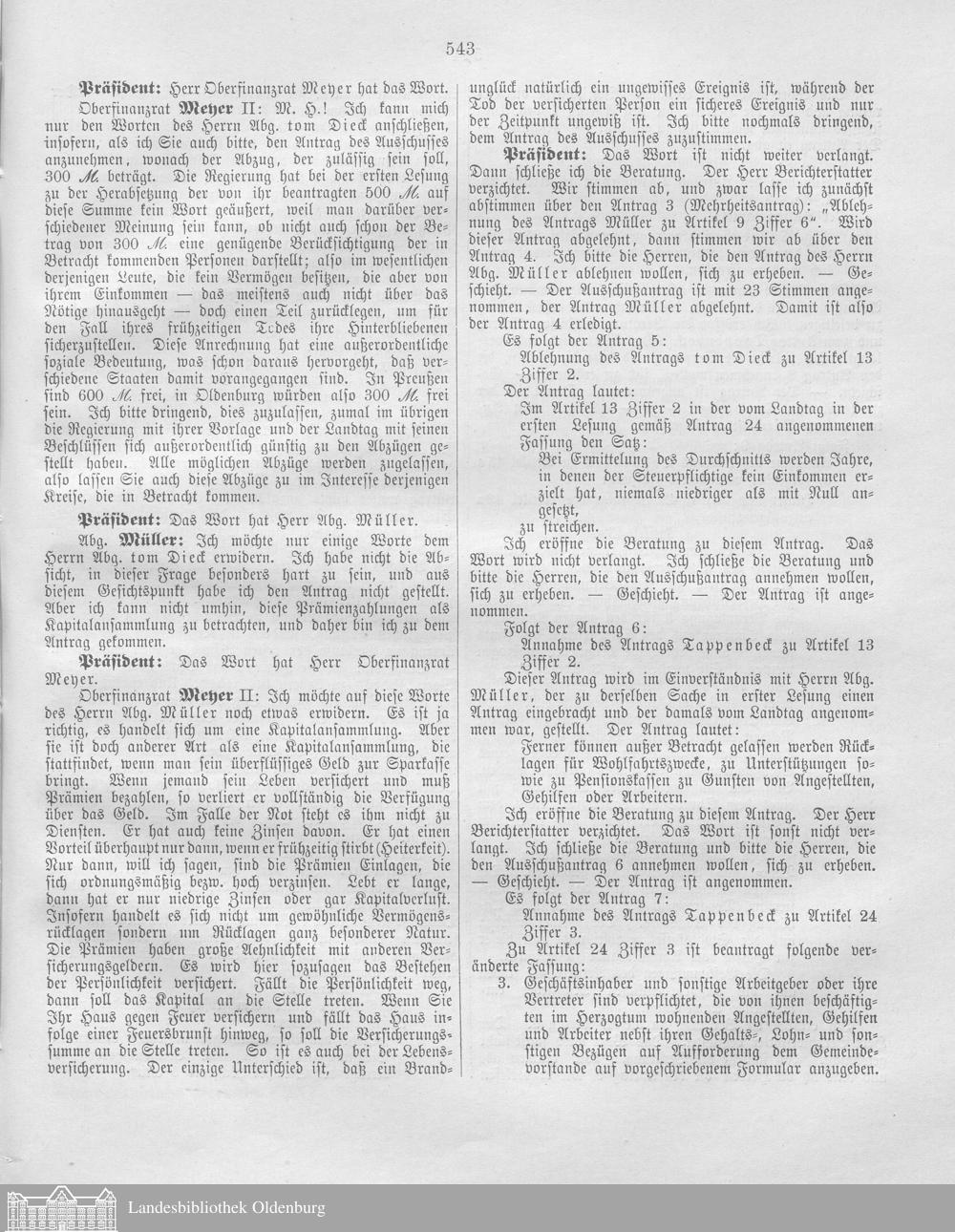 Verhandlungen der ... Versammlung des ... Landtags des Freistaats Oldenburg
