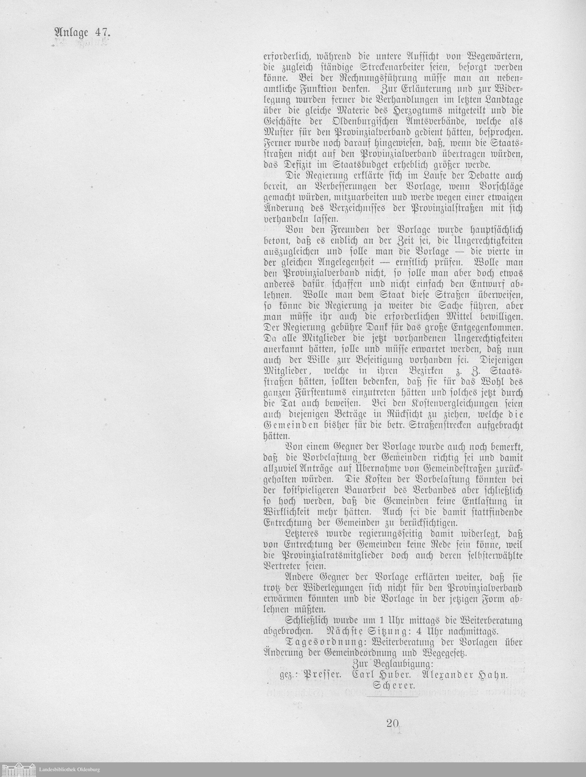 Verhandlungen der ... Versammlung des ... Landtags des Freistaats Oldenburg / Anlagen zu den Niederschriften und Berichten / Anlagen zu den Protokollen und Berichten