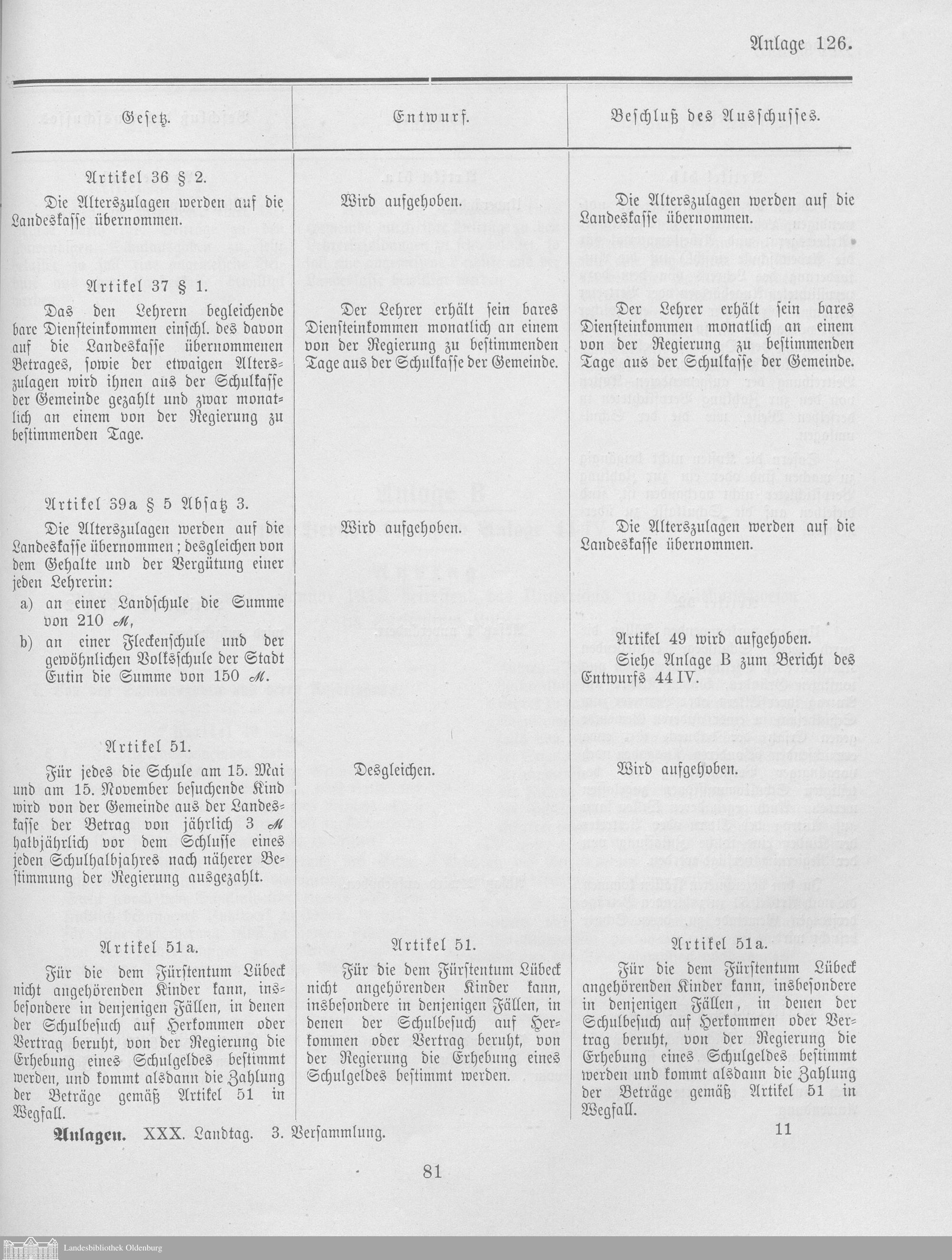 Verhandlungen der ... Versammlung des ... Landtags des Freistaats Oldenburg / Anlagen zu den Niederschriften und Berichten / Anlagen zu den Protokollen und Berichten