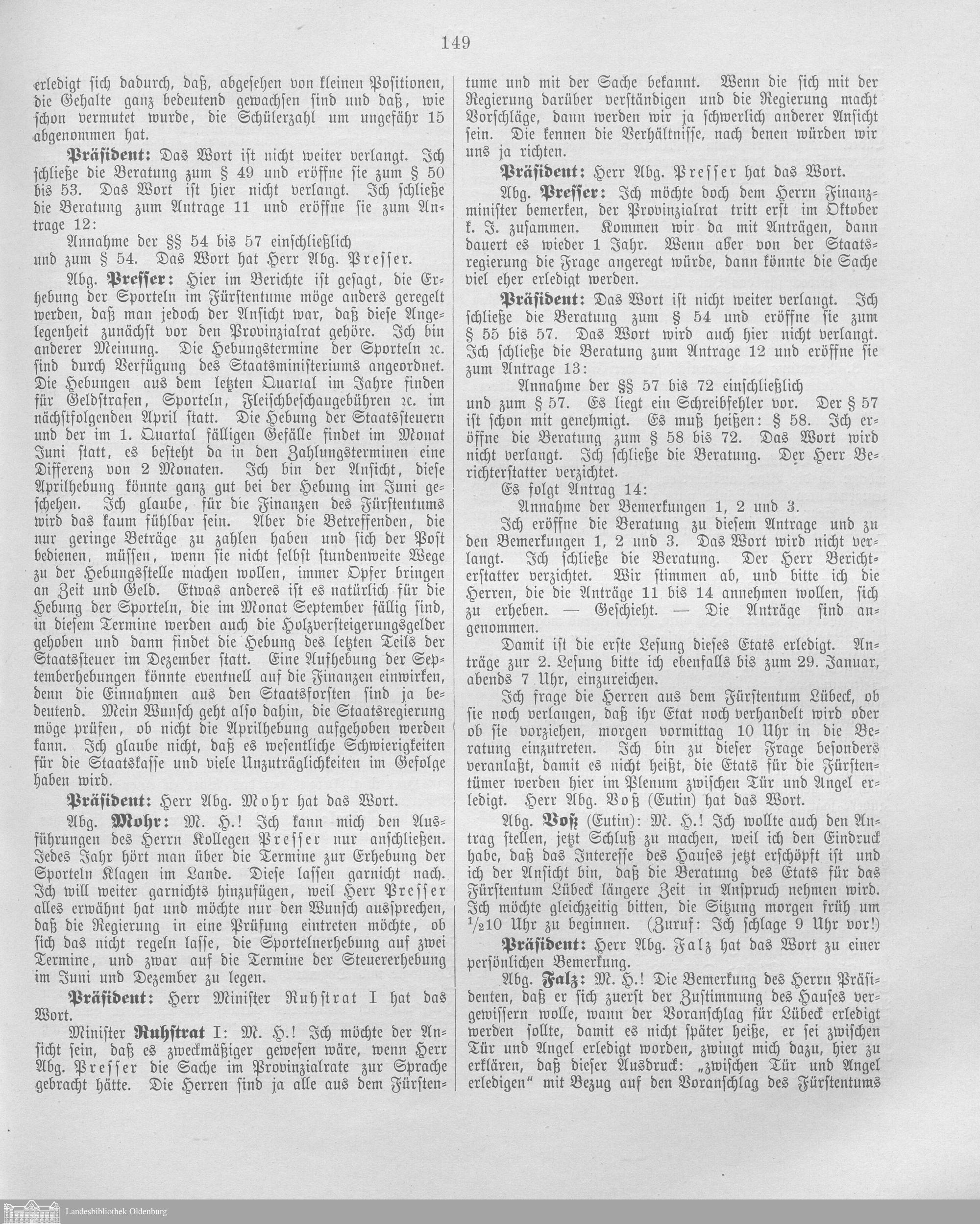 Landtag 1.1849 - 6.1852; 30.1905/08 - 33.1916/19; 1.1919/20 - 5.1928/30[?], 1849-1930