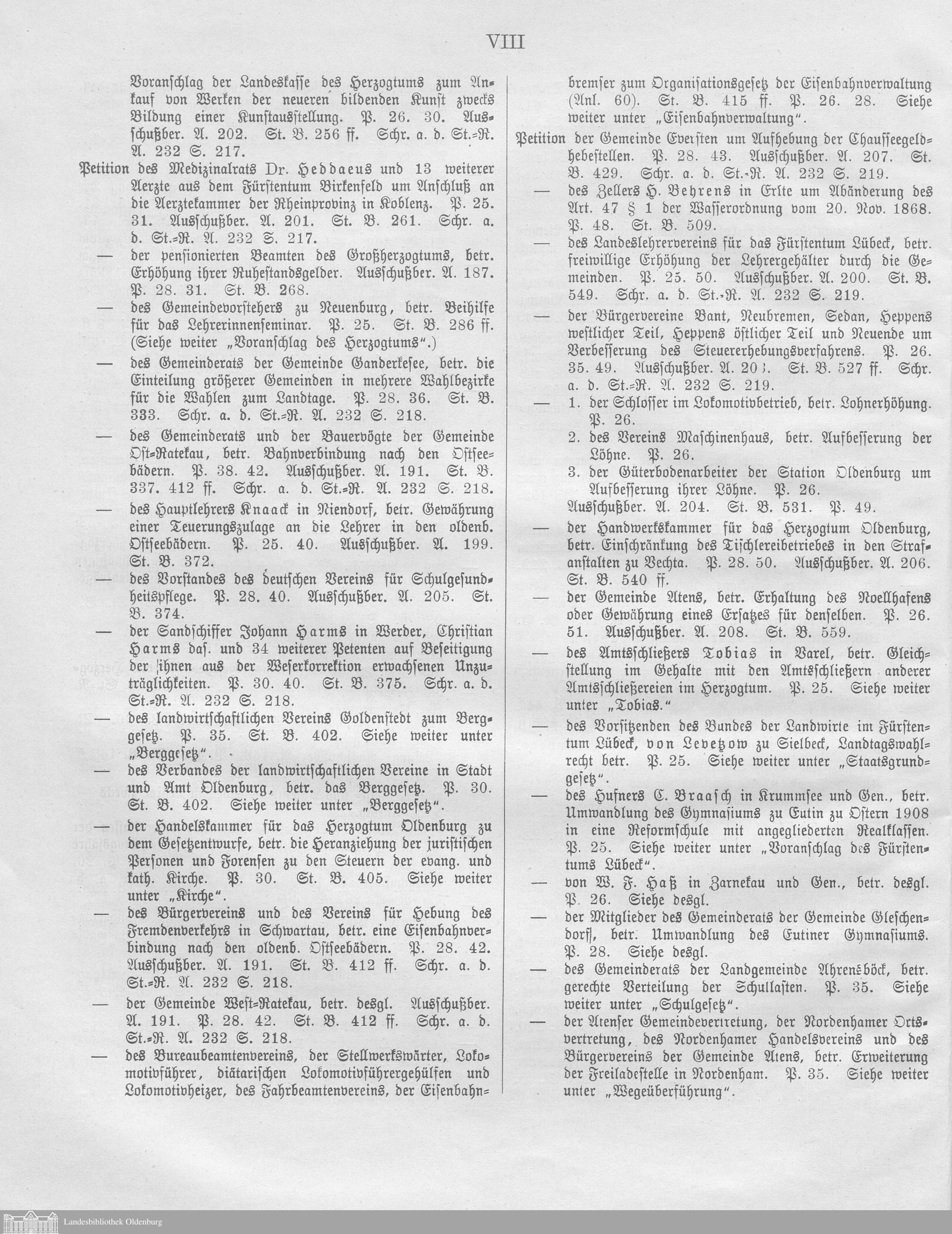 Verhandlungen des ... Allgemeinen Landtags des Großherzogtums Oldenburg / Alphabetisches Register