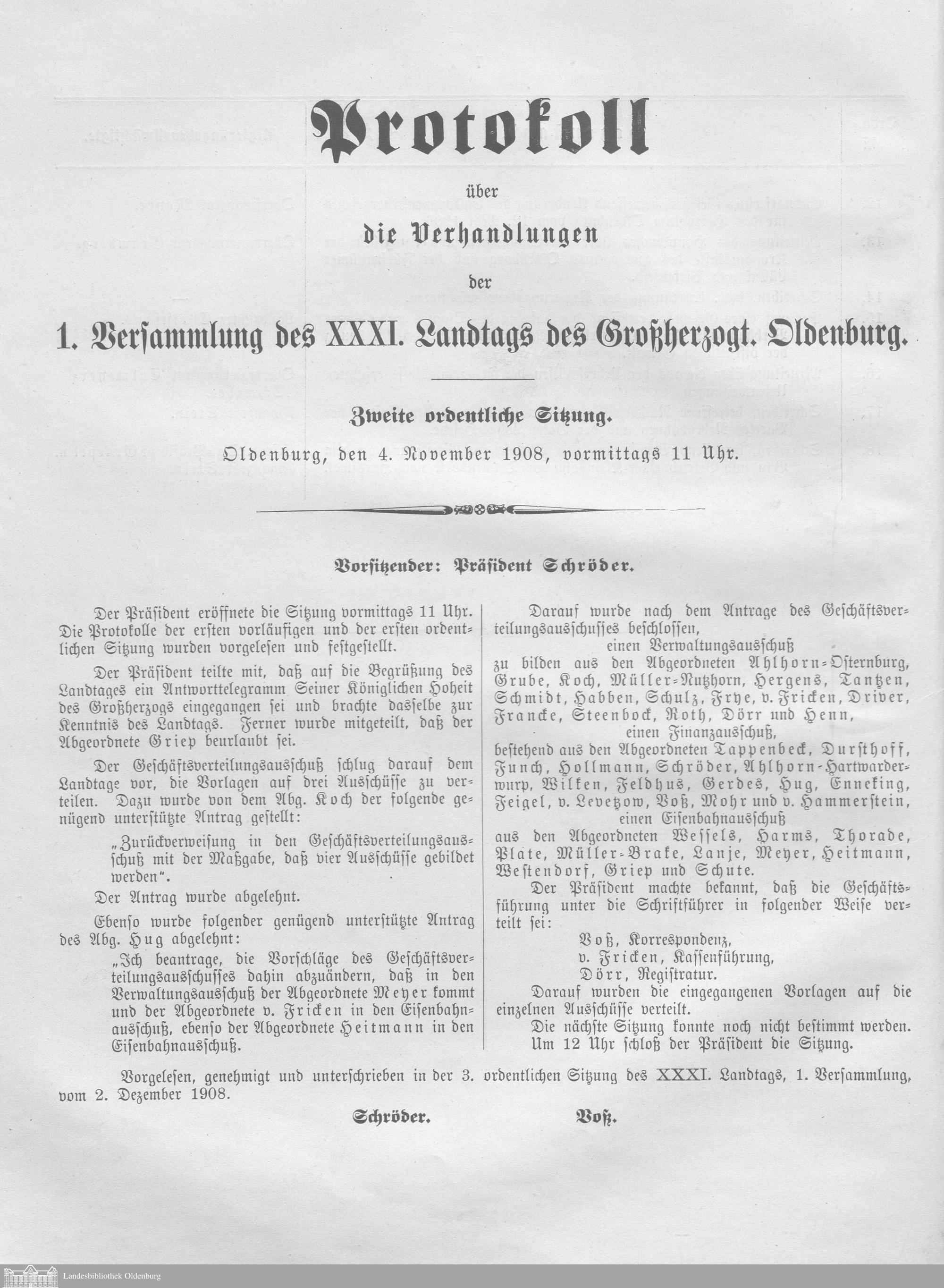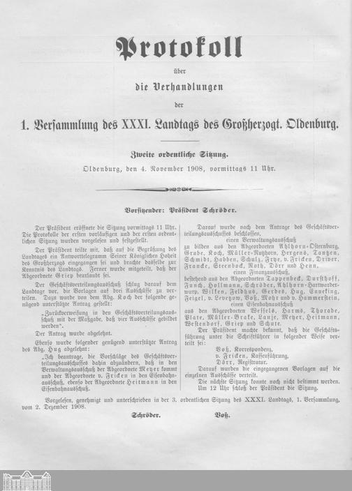 1. Versammlung 03.11.1908-04.03.1909