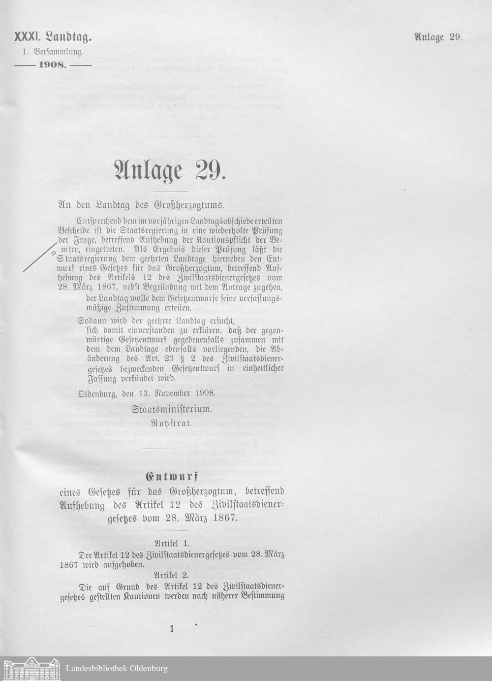 XXXI. Landtag 03.11.1908-31.03.1911