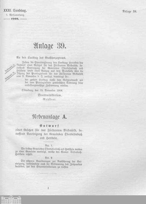 Verhandlungen der ... Versammlung des ... Landtags des Freistaats Oldenburg / Anlagen zu den Niederschriften und Berichten / Anlagen zu den Protokollen und Berichten