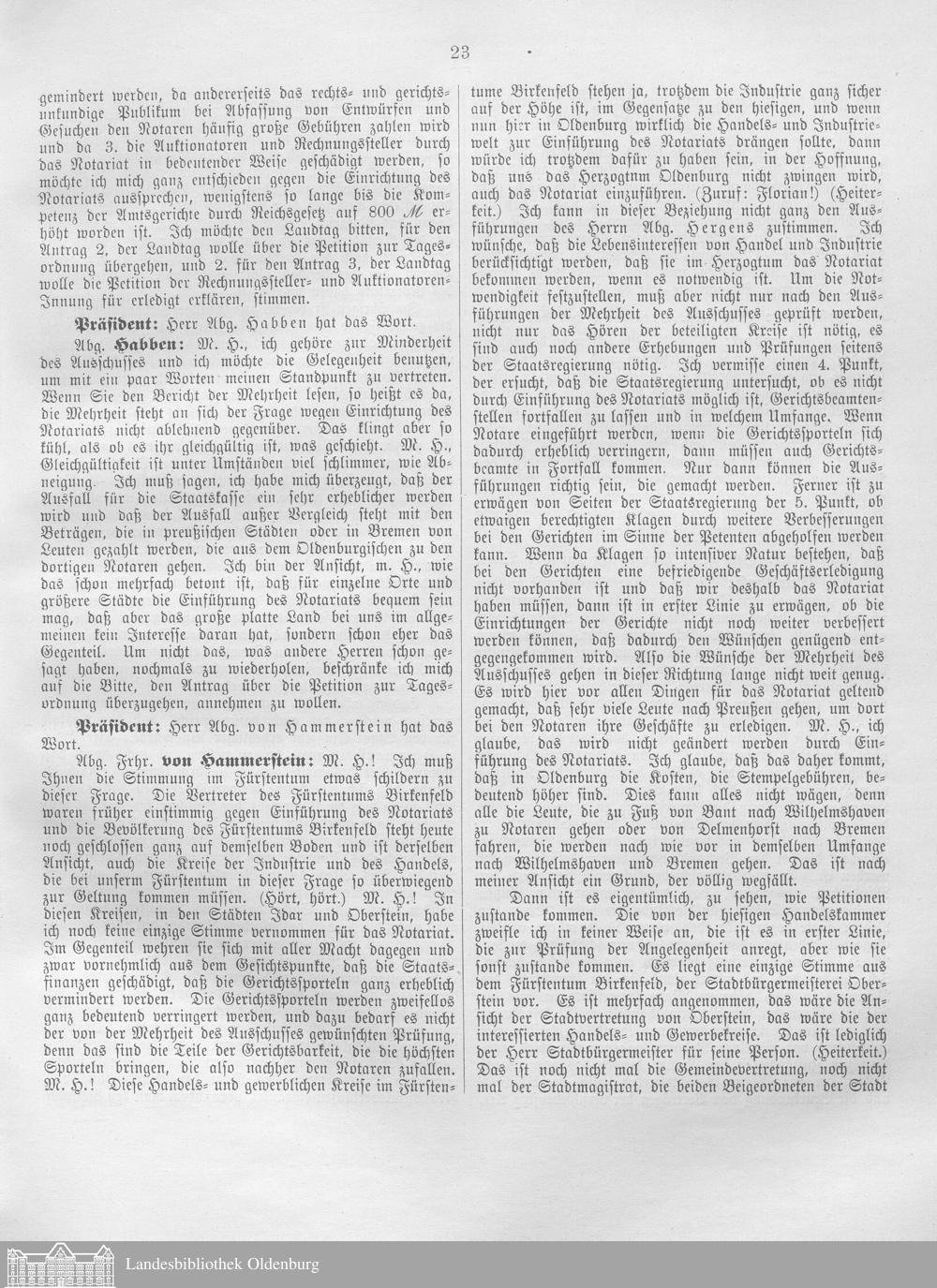 Verhandlungen der ... Versammlung des ... Landtags des Freistaats Oldenburg