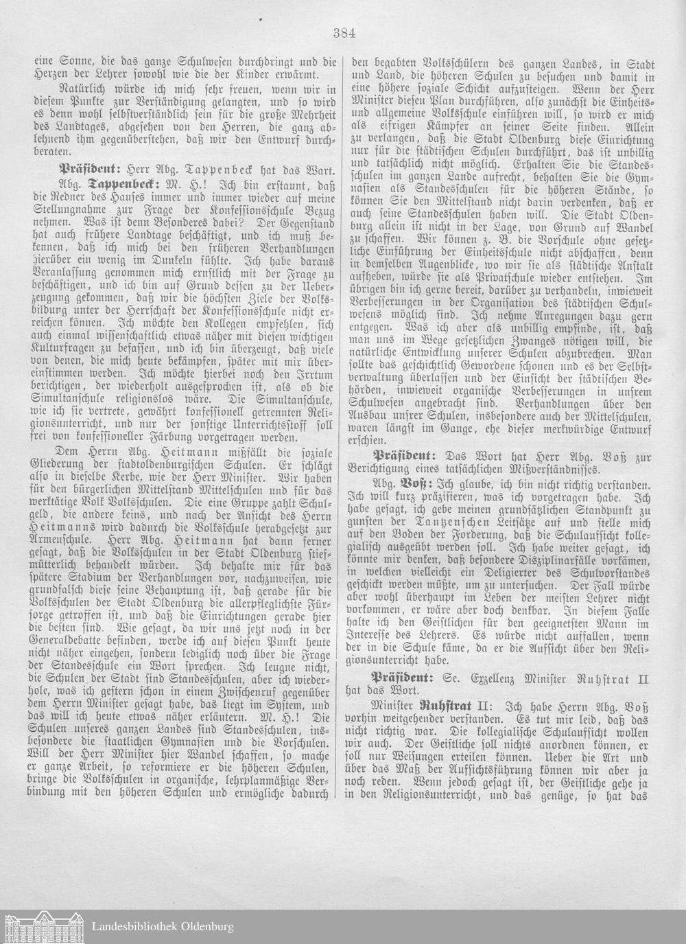 Verhandlungen der ... Versammlung des ... Landtags des Freistaats Oldenburg