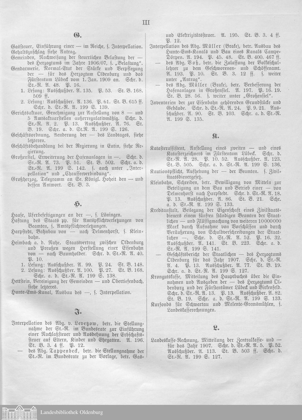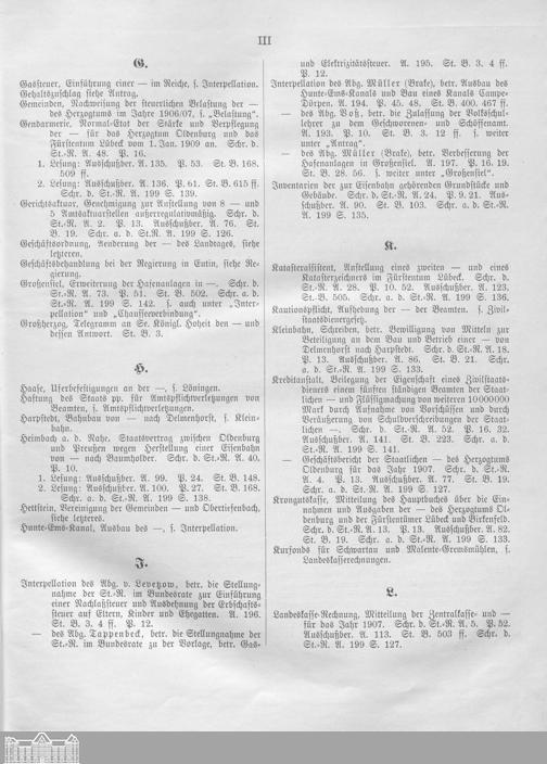 Verhandlungen des ... Allgemeinen Landtags des Großherzogtums Oldenburg / Alphabetisches Register