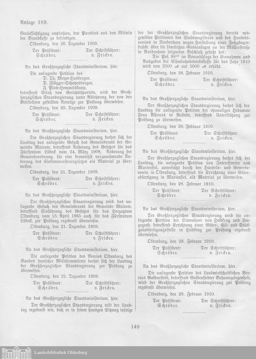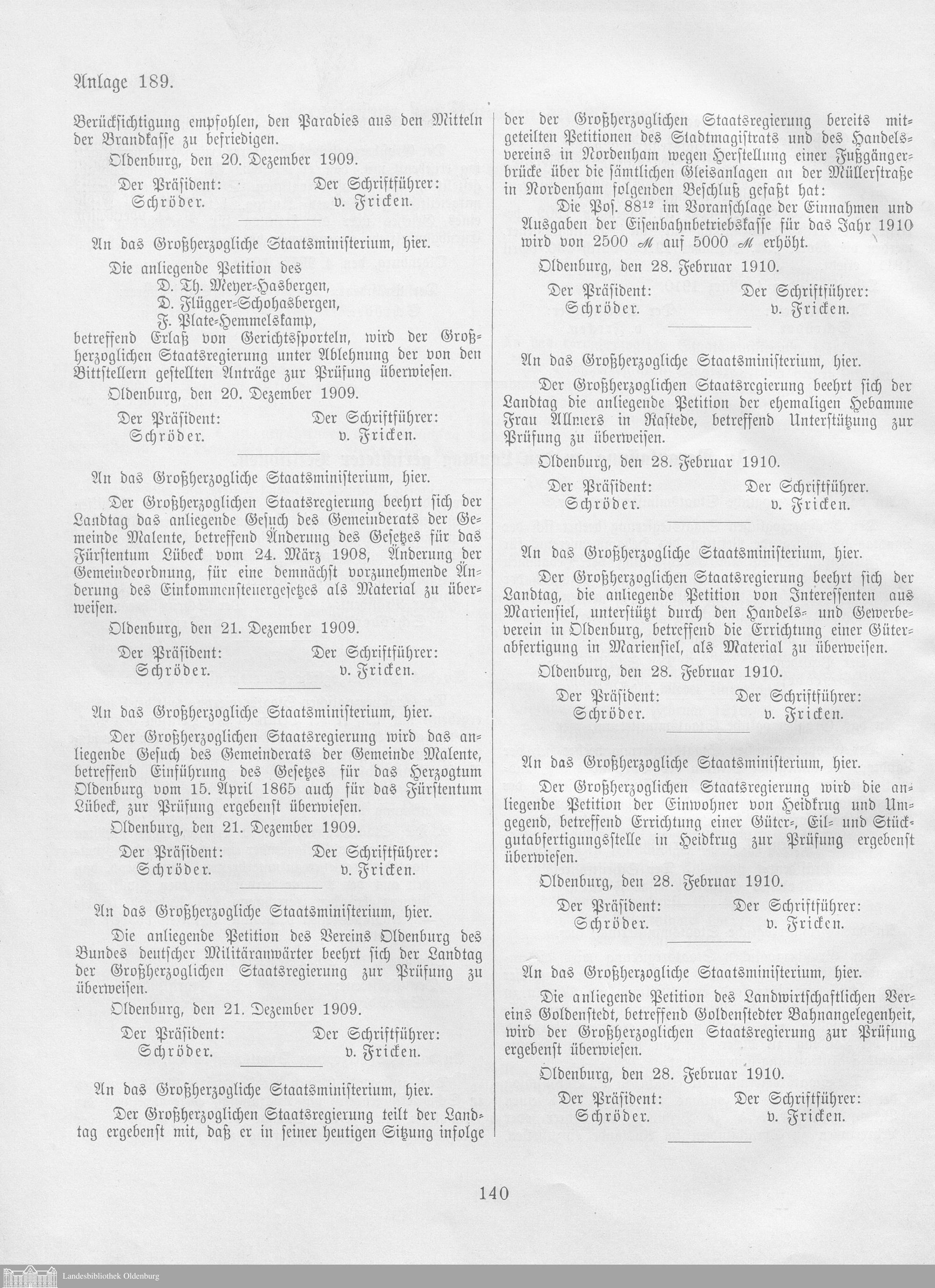 Verhandlungen der ... Versammlung des ... Landtags des Freistaats Oldenburg / Anlagen zu den Niederschriften und Berichten / Anlagen zu den Protokollen und Berichten
