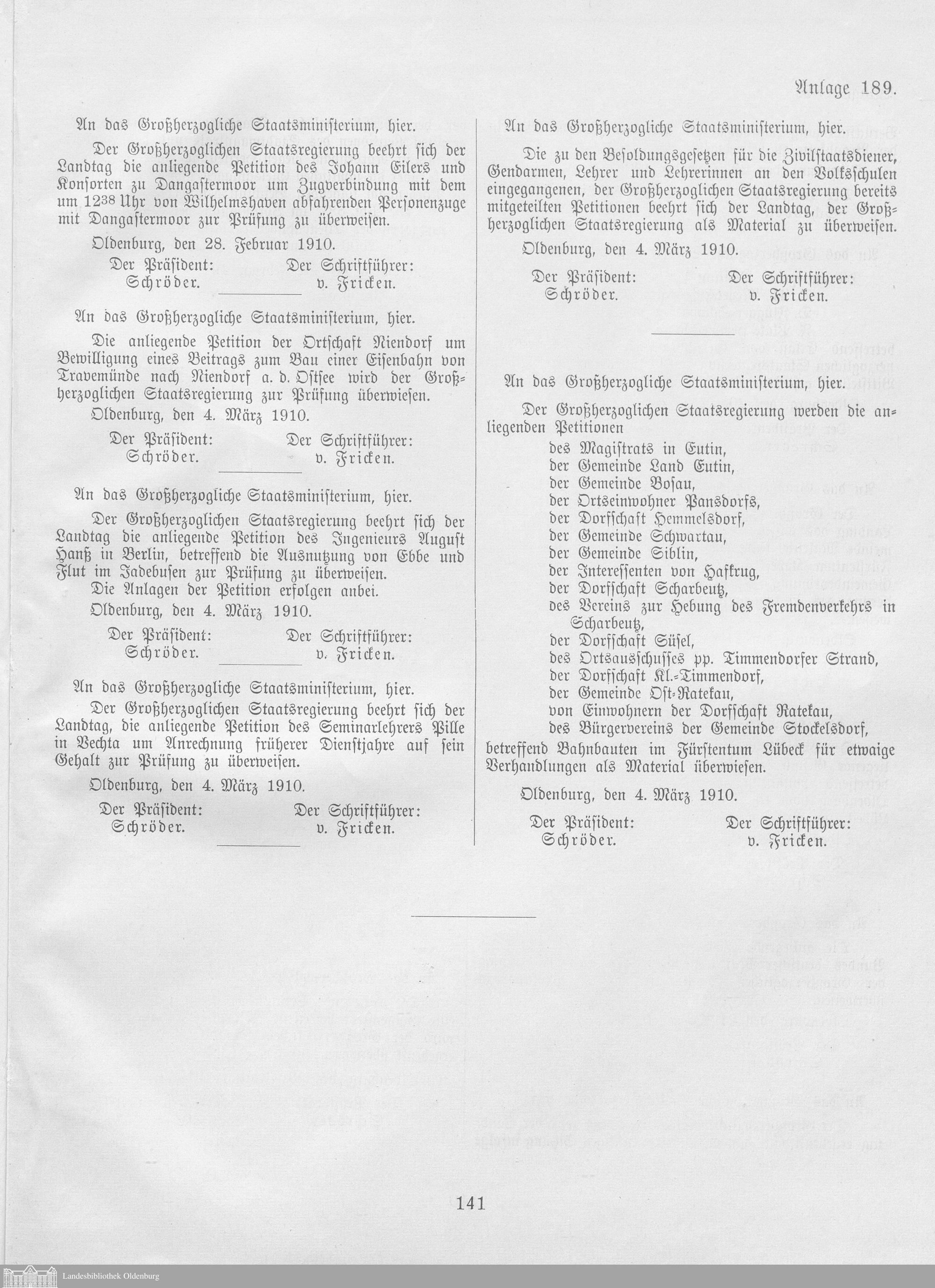 Verhandlungen der ... Versammlung des ... Landtags des Freistaats Oldenburg / Anlagen zu den Niederschriften und Berichten / Anlagen zu den Protokollen und Berichten
