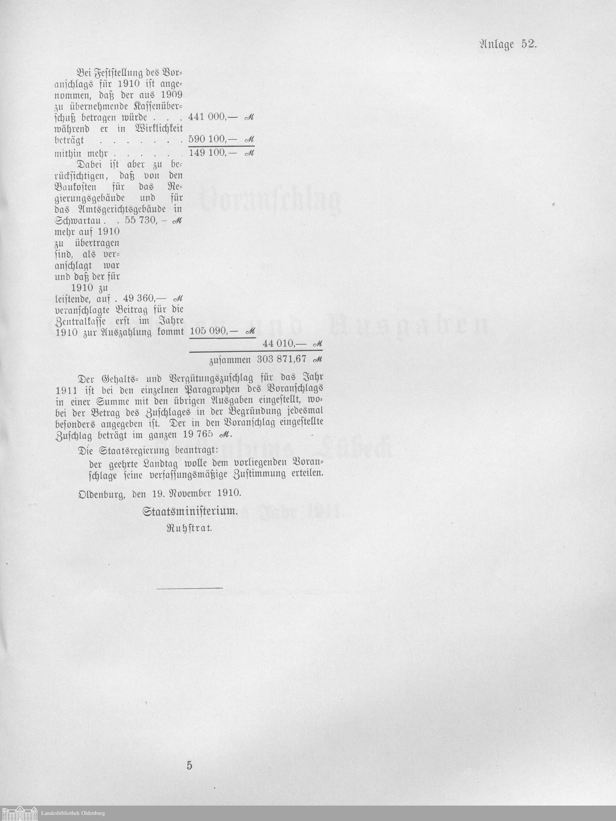 Verhandlungen der ... Versammlung des ... Landtags des Freistaats Oldenburg / Anlagen zu den Niederschriften und Berichten / Anlagen zu den Protokollen und Berichten
