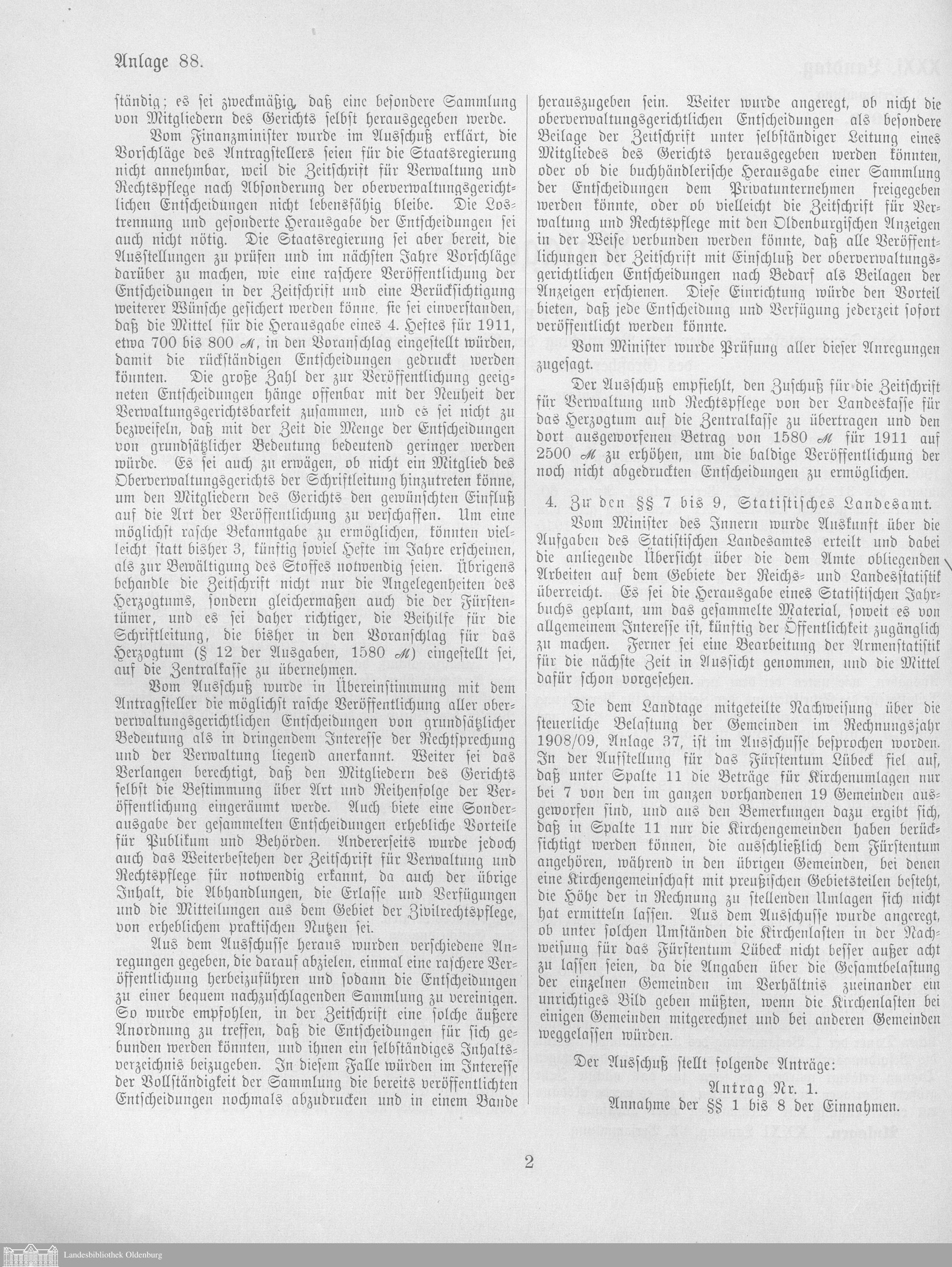 Verhandlungen der ... Versammlung des ... Landtags des Freistaats Oldenburg / Anlagen zu den Niederschriften und Berichten / Anlagen zu den Protokollen und Berichten