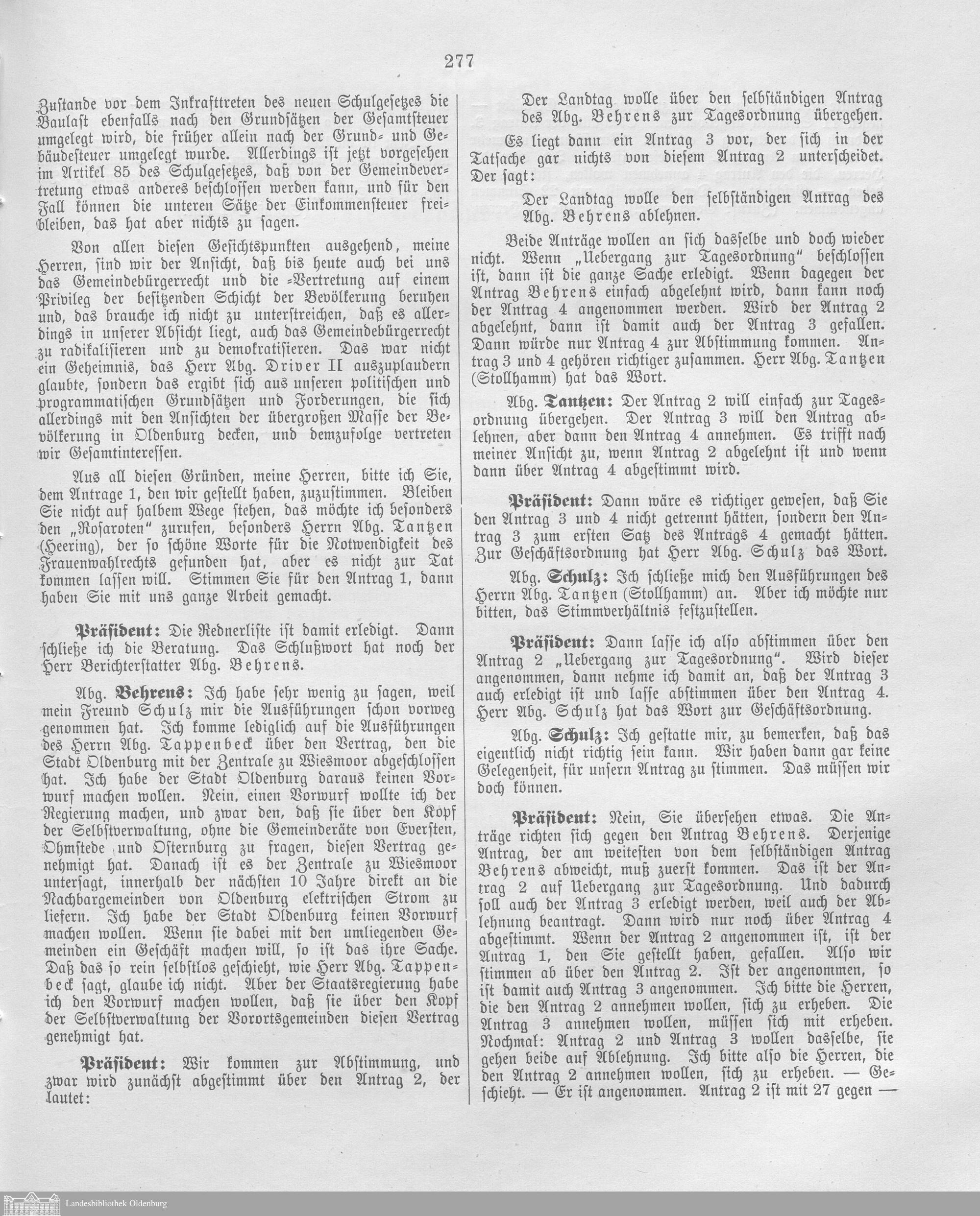 Verhandlungen der ... Versammlung des ... Landtags des Freistaats Oldenburg