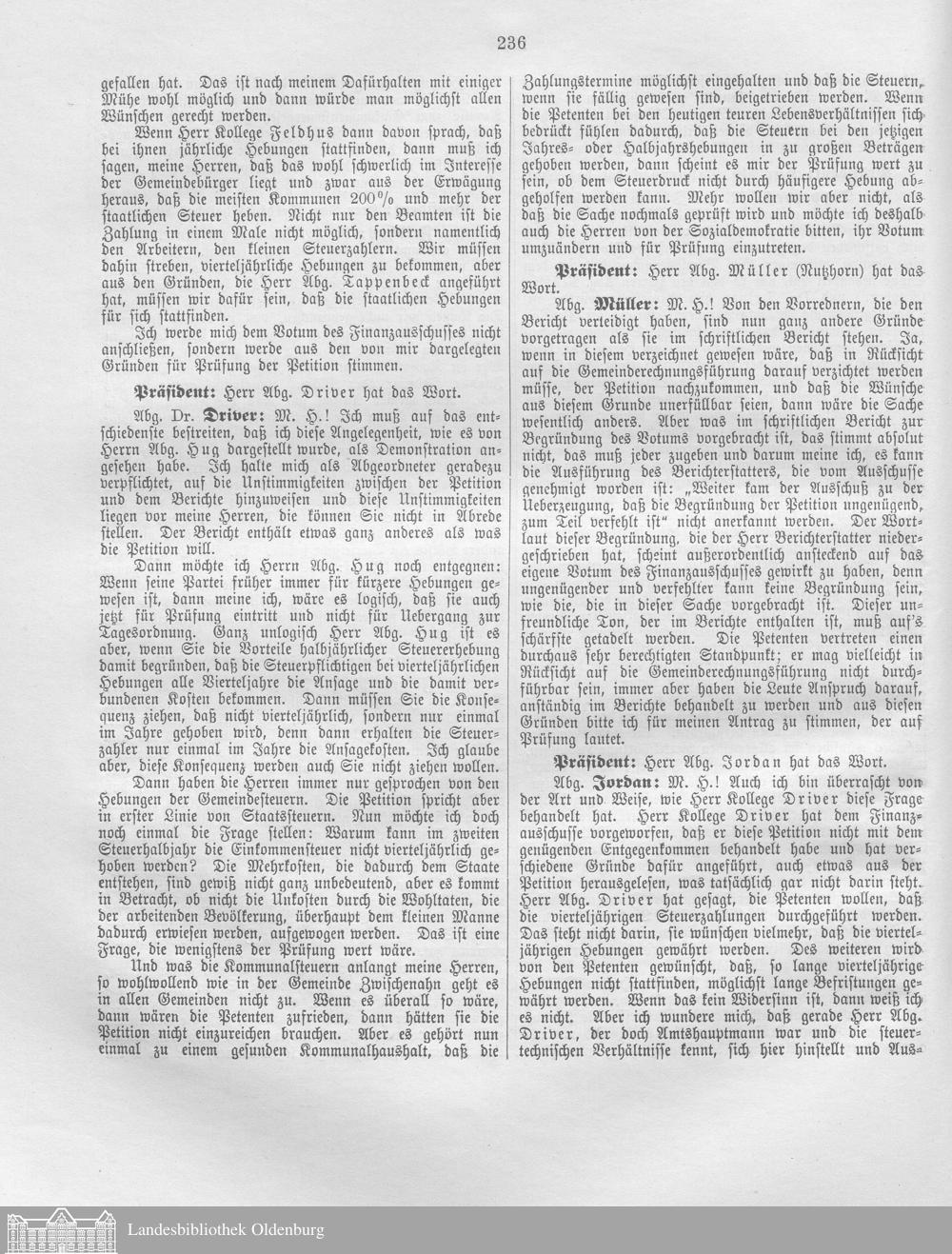 Landtag 1.1849 - 6.1852; 30.1905/08 - 33.1916/19; 1.1919/20 - 5.1928/30[?], 1849-1930