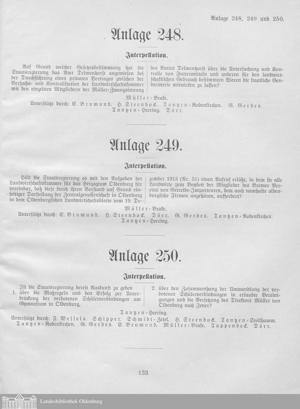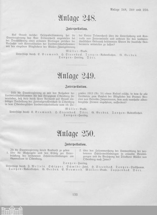 Verhandlungen der ... Versammlung des ... Landtags des Freistaats Oldenburg / Anlagen zu den Niederschriften und Berichten / Anlagen zu den Protokollen und Berichten