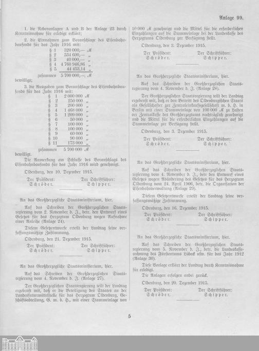 Verhandlungen der ... Versammlung des ... Landtags des Freistaats Oldenburg / Anlagen zu den Niederschriften und Berichten / Anlagen zu den Protokollen und Berichten