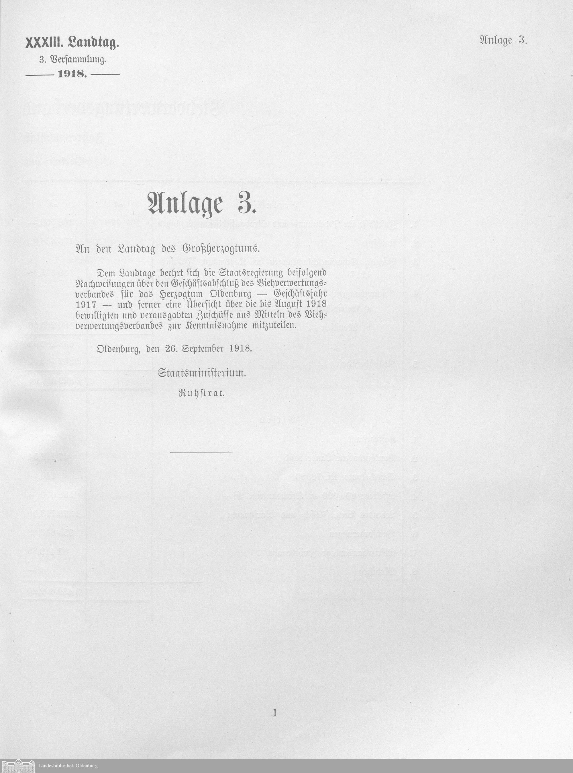 Verhandlungen der ... Versammlung des ... Landtags des Freistaats Oldenburg / Anlagen zu den Niederschriften und Berichten / Anlagen zu den Protokollen und Berichten