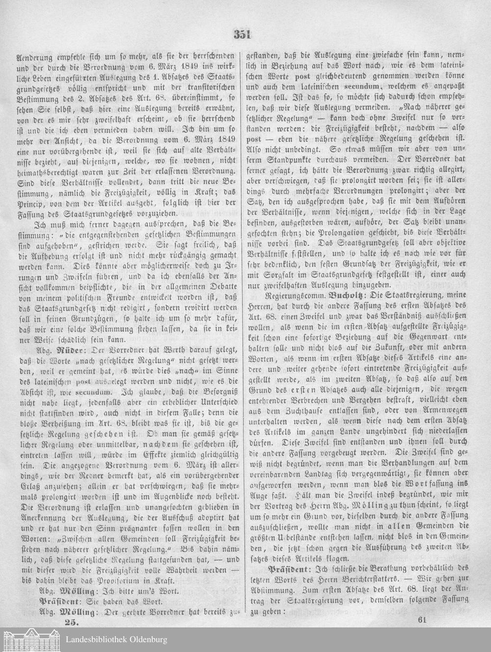 V. allgemeiner Landtag 25.11.1851-12.06.1852