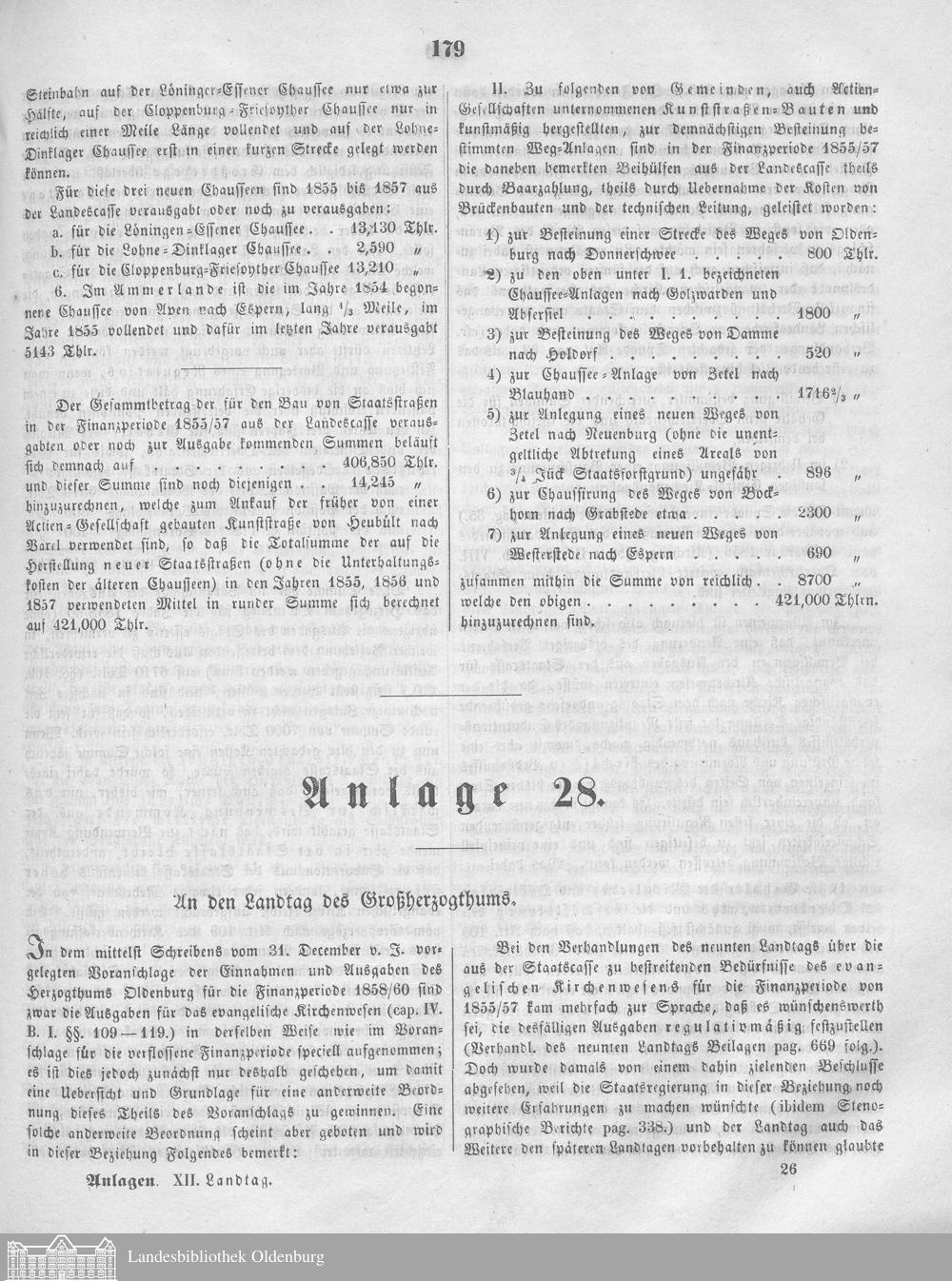 Verhandlungen der ... Versammlung des ... Landtags des Freistaats Oldenburg / Anlagen zu den Niederschriften und Berichten / Anlagen zu den Protokollen und Berichten