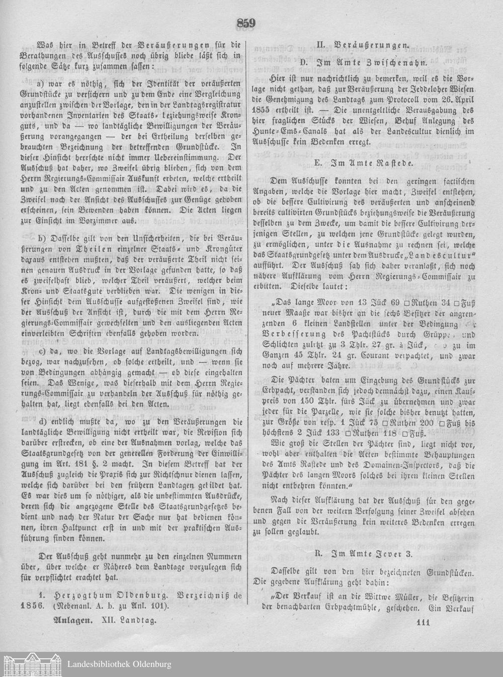 Verhandlungen der ... Versammlung des ... Landtags des Freistaats Oldenburg / Anlagen zu den Niederschriften und Berichten / Anlagen zu den Protokollen und Berichten