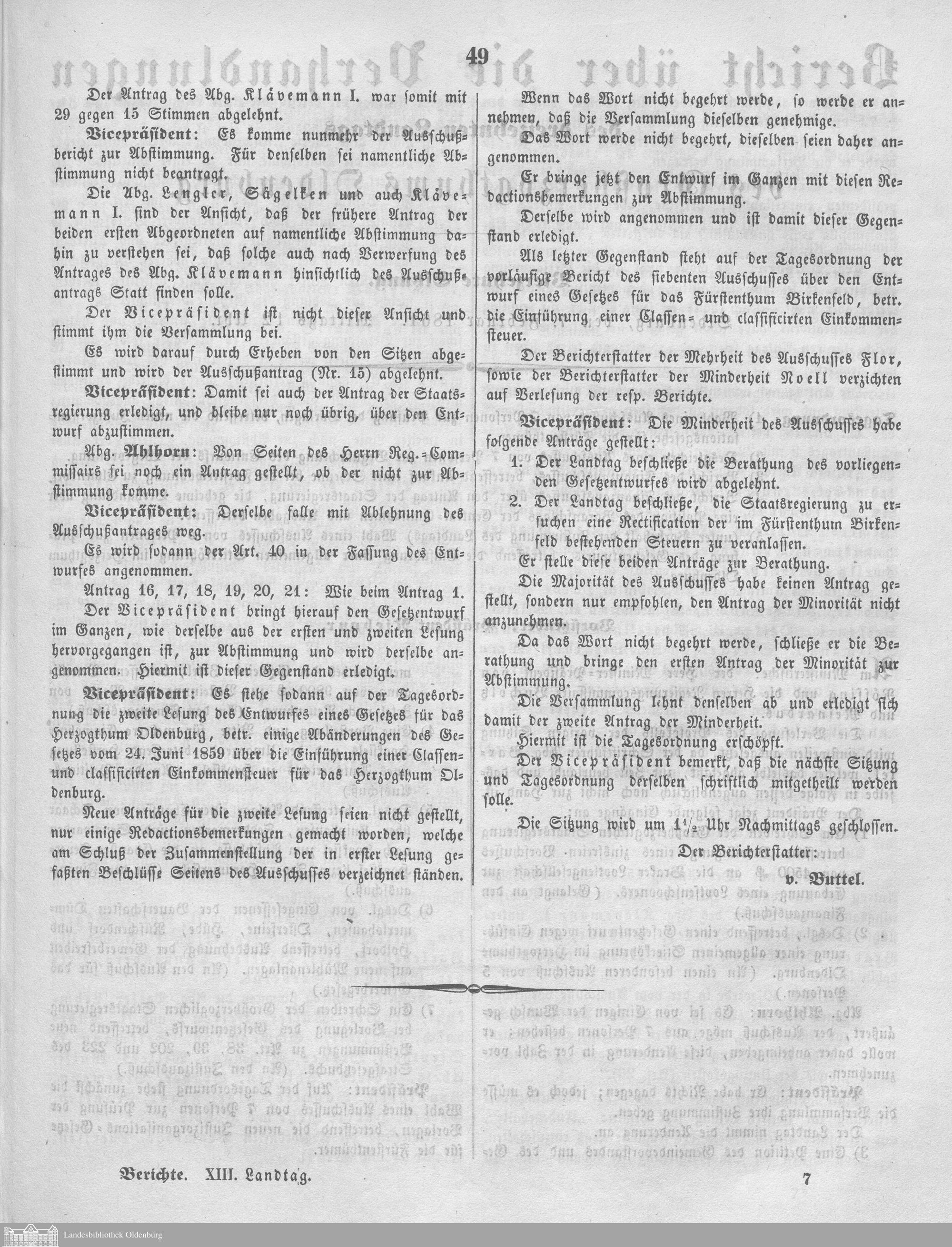 Verhandlungen des ... Allgemeinen Landtags des Großherzogtums Oldenburg / Berichte