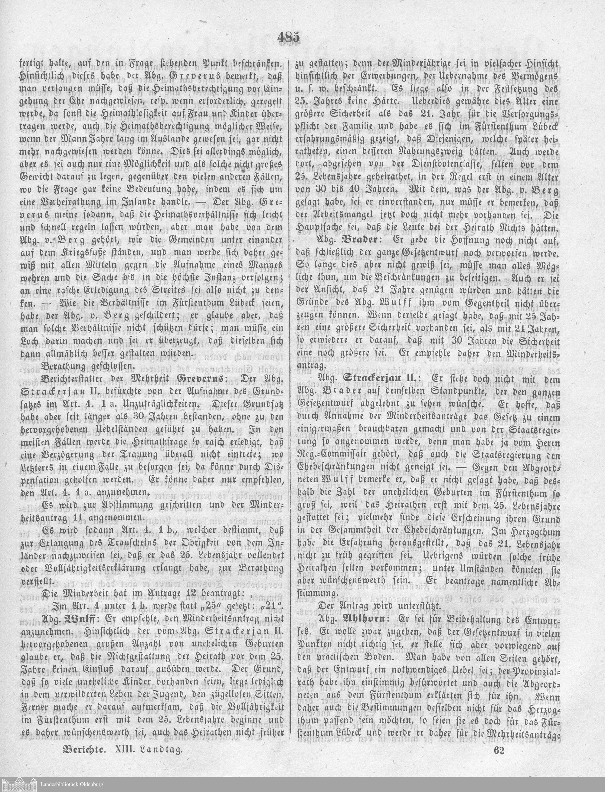 Verhandlungen des ... Allgemeinen Landtags des Großherzogtums Oldenburg / Berichte