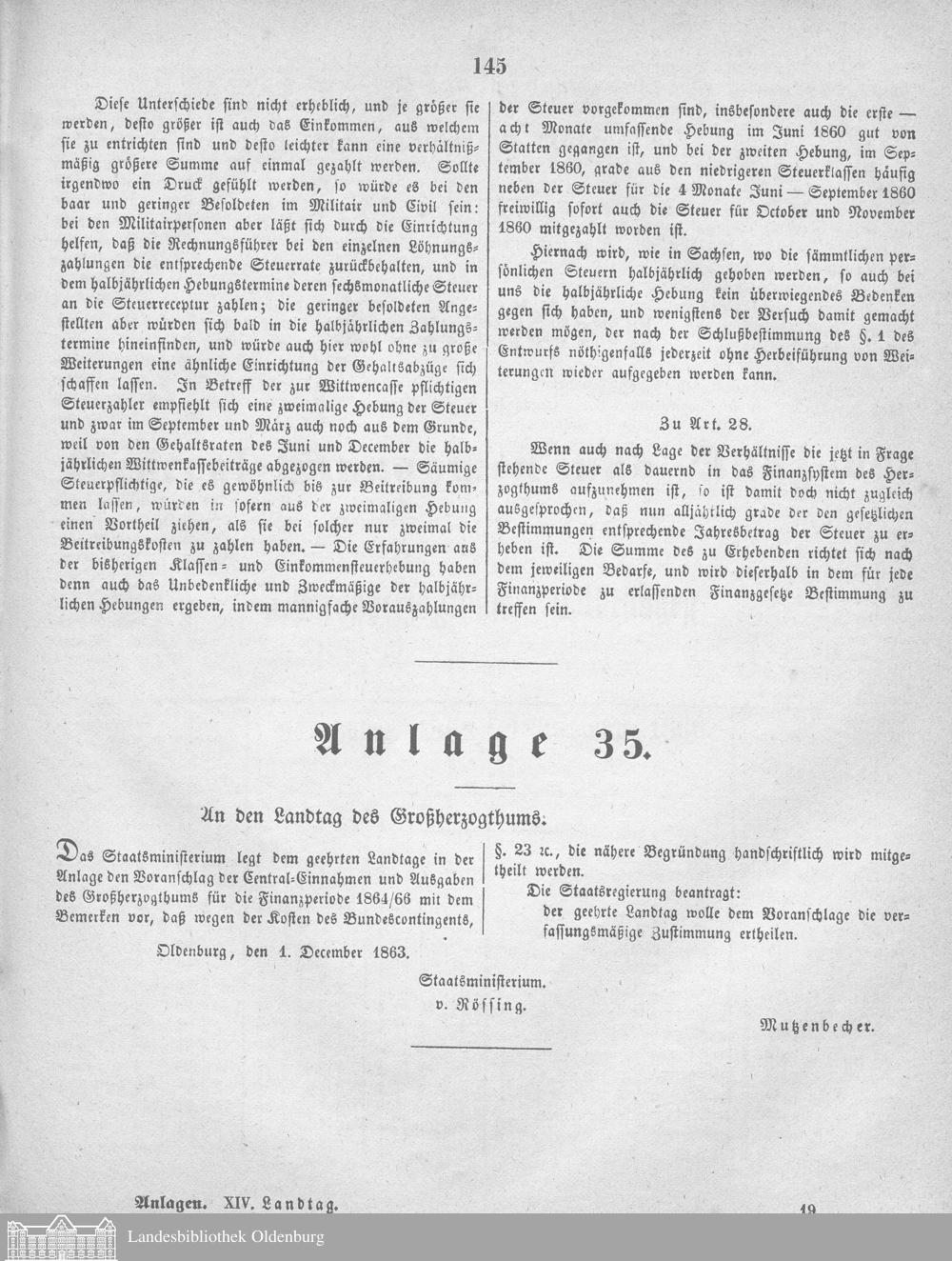 XIV. Landtag 07.12.1863-19.03.1866
