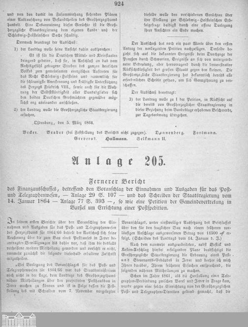 Verhandlungen der ... Versammlung des ... Landtags des Freistaats Oldenburg / Anlagen zu den Niederschriften und Berichten / Anlagen zu den Protokollen und Berichten