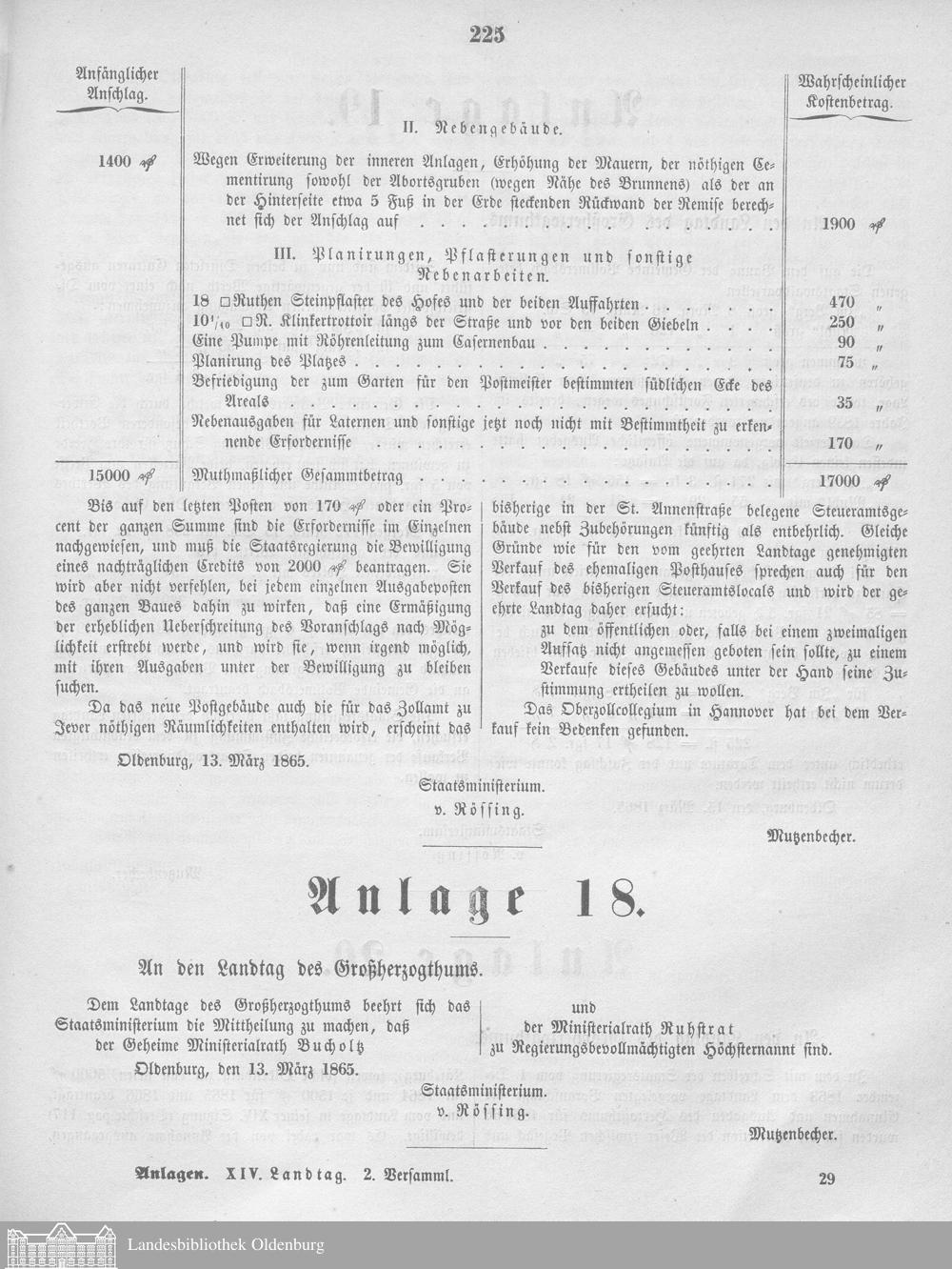 Verhandlungen der ... Versammlung des ... Landtags des Freistaats Oldenburg / Anlagen zu den Niederschriften und Berichten / Anlagen zu den Protokollen und Berichten