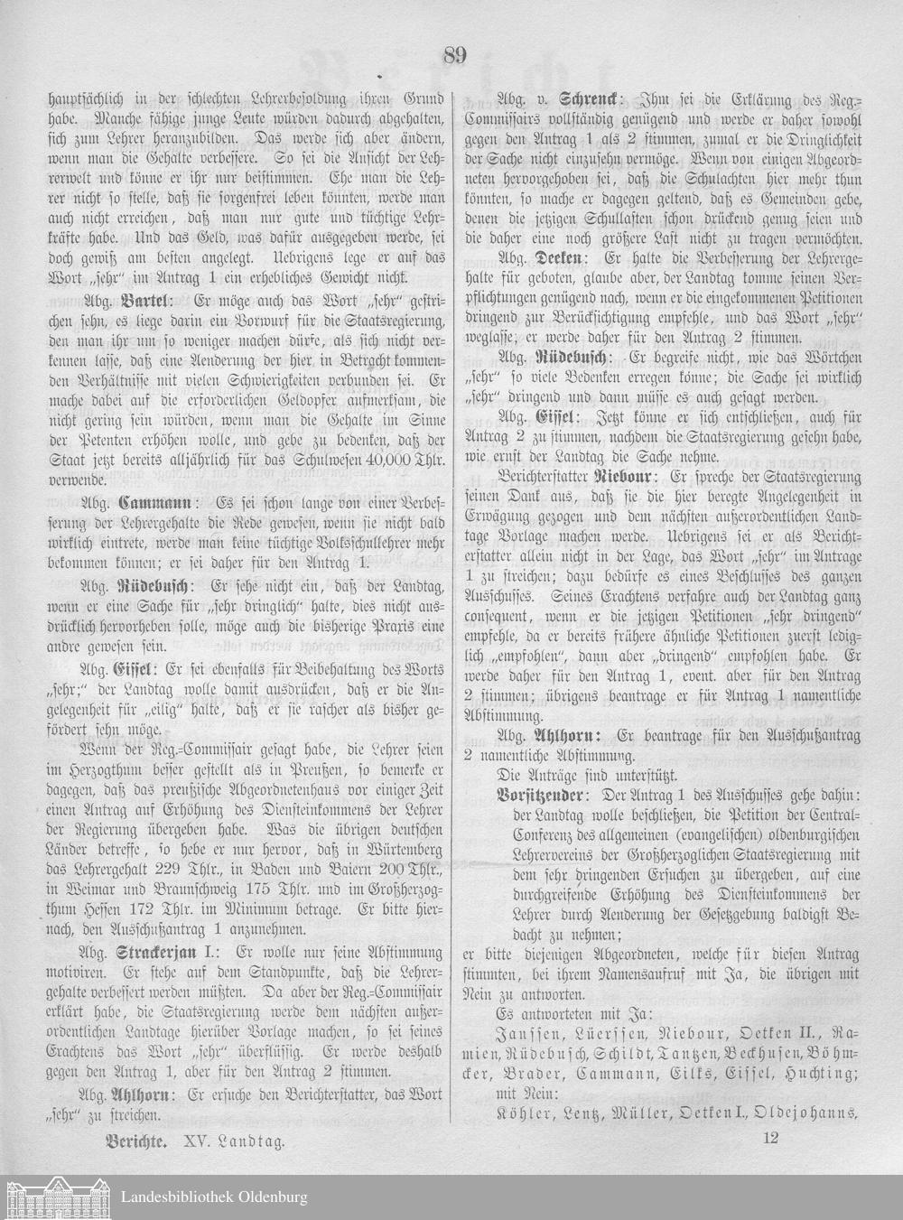 Verhandlungen des ... Allgemeinen Landtags des Großherzogtums Oldenburg / Berichte