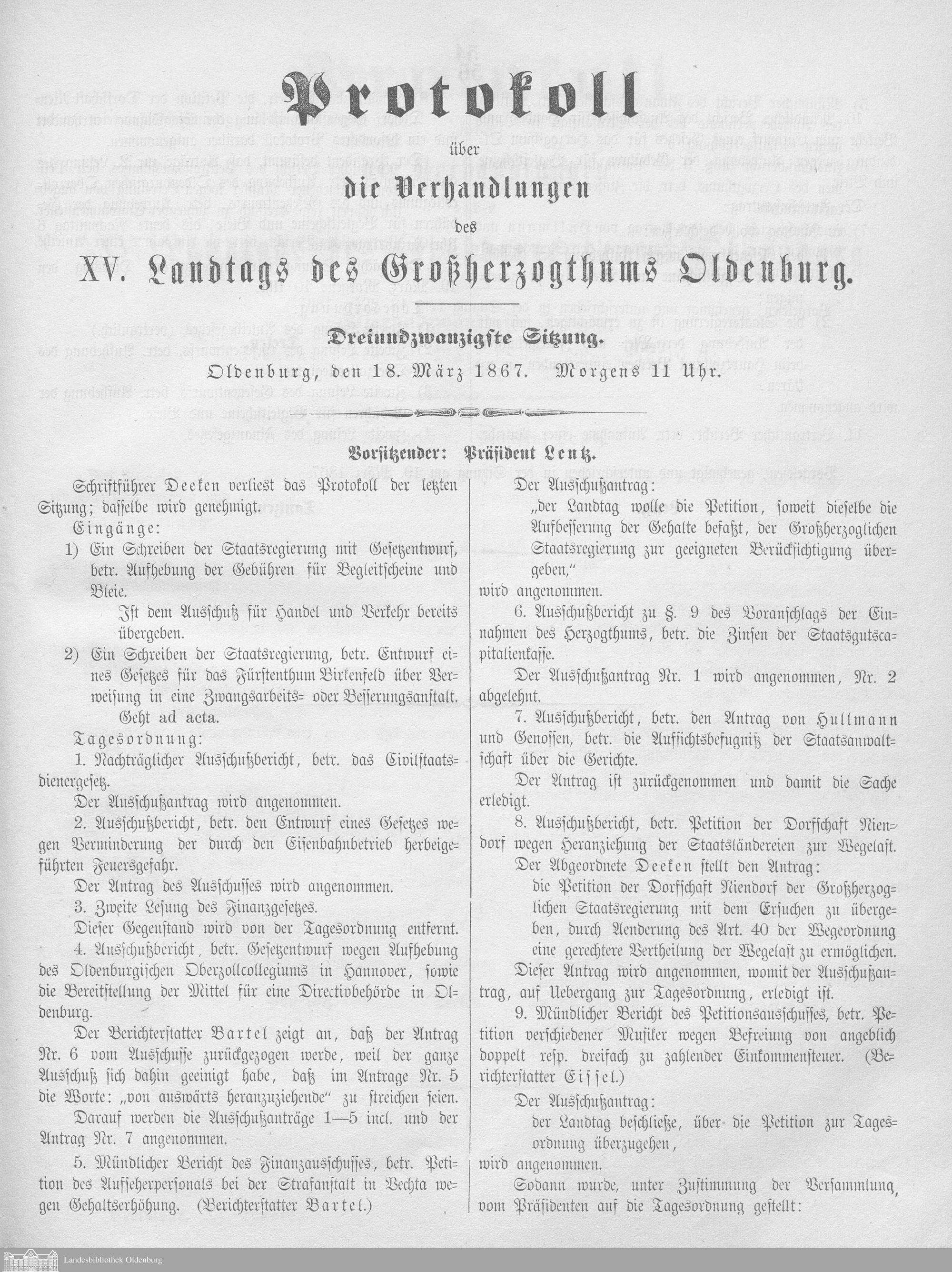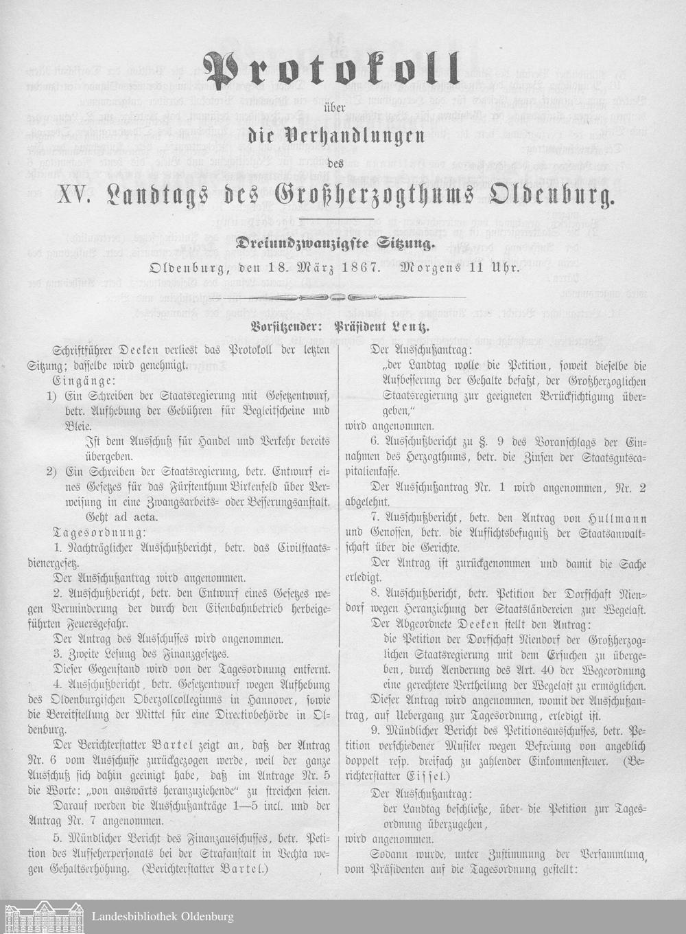 Verhandlungen des ... Allgemeinen Landtags des Großherzogtums Oldenburg