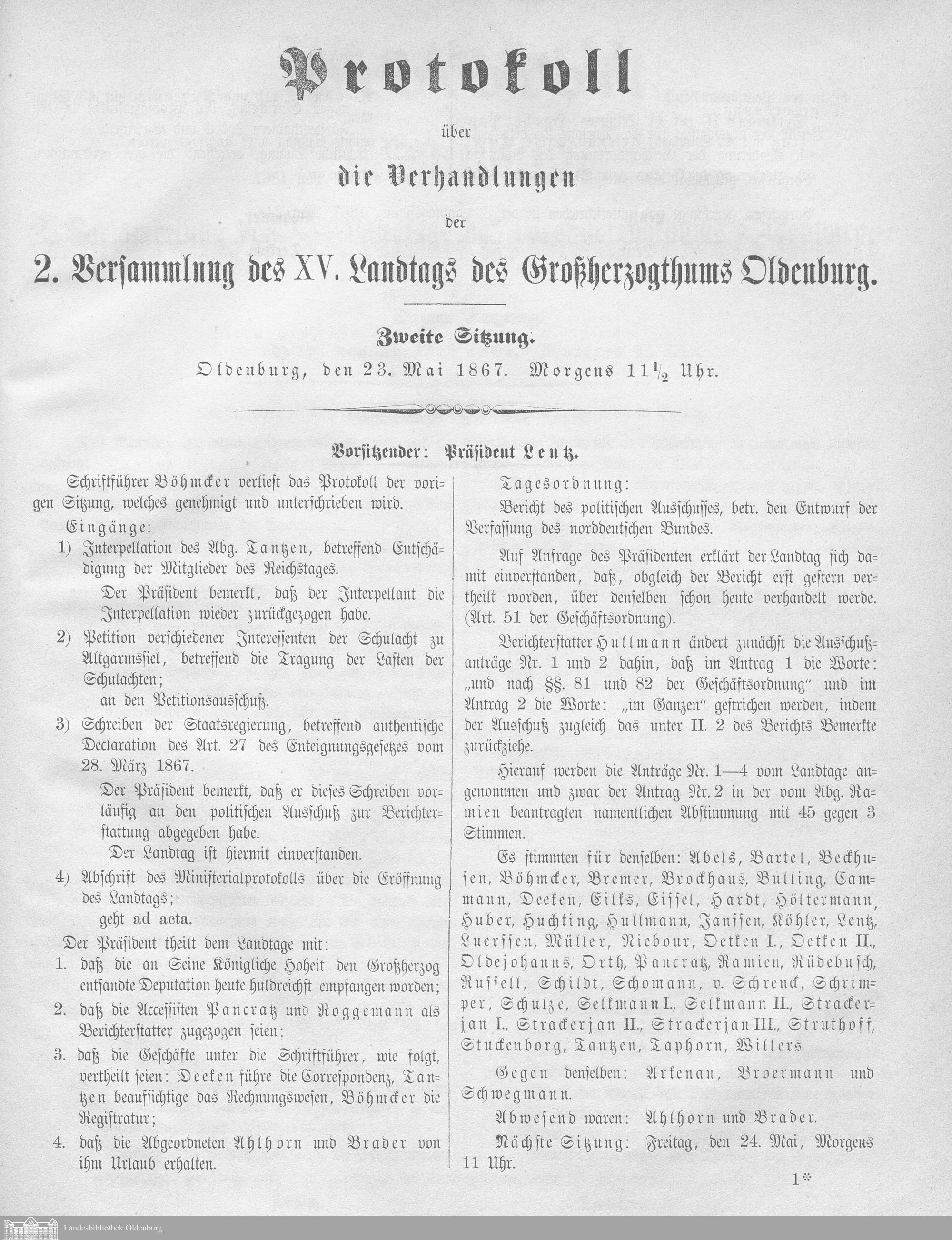 2. Versammlung 20.05.1867-25.05.1867