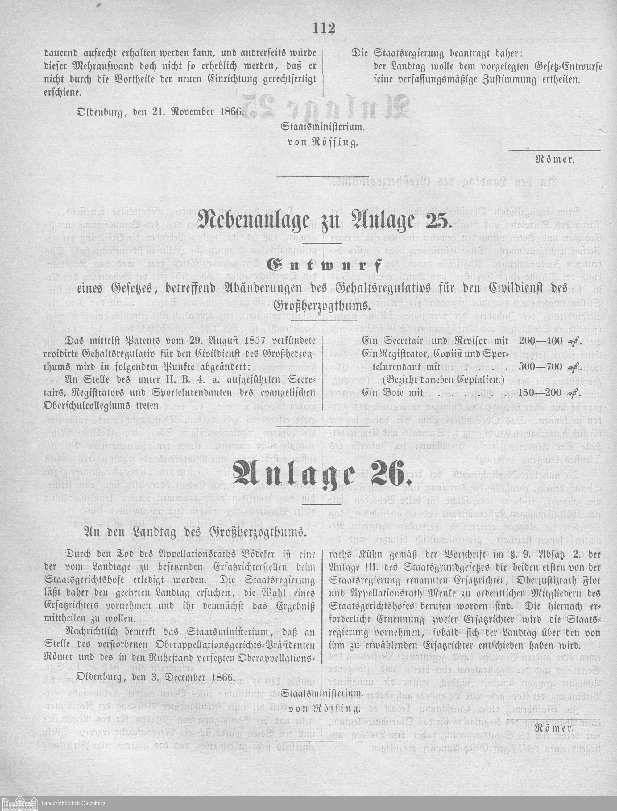 Verhandlungen der ... Versammlung des ... Landtags des Freistaats Oldenburg / Anlagen zu den Niederschriften und Berichten / Anlagen zu den Protokollen und Berichten