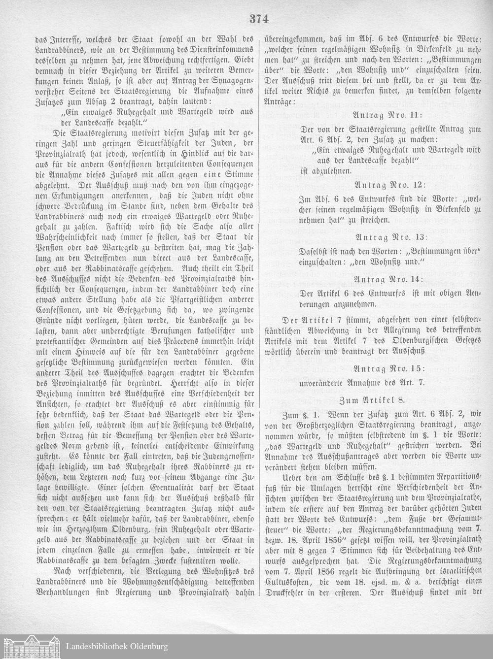 Verhandlungen der ... Versammlung des ... Landtags des Freistaats Oldenburg / Anlagen zu den Niederschriften und Berichten / Anlagen zu den Protokollen und Berichten