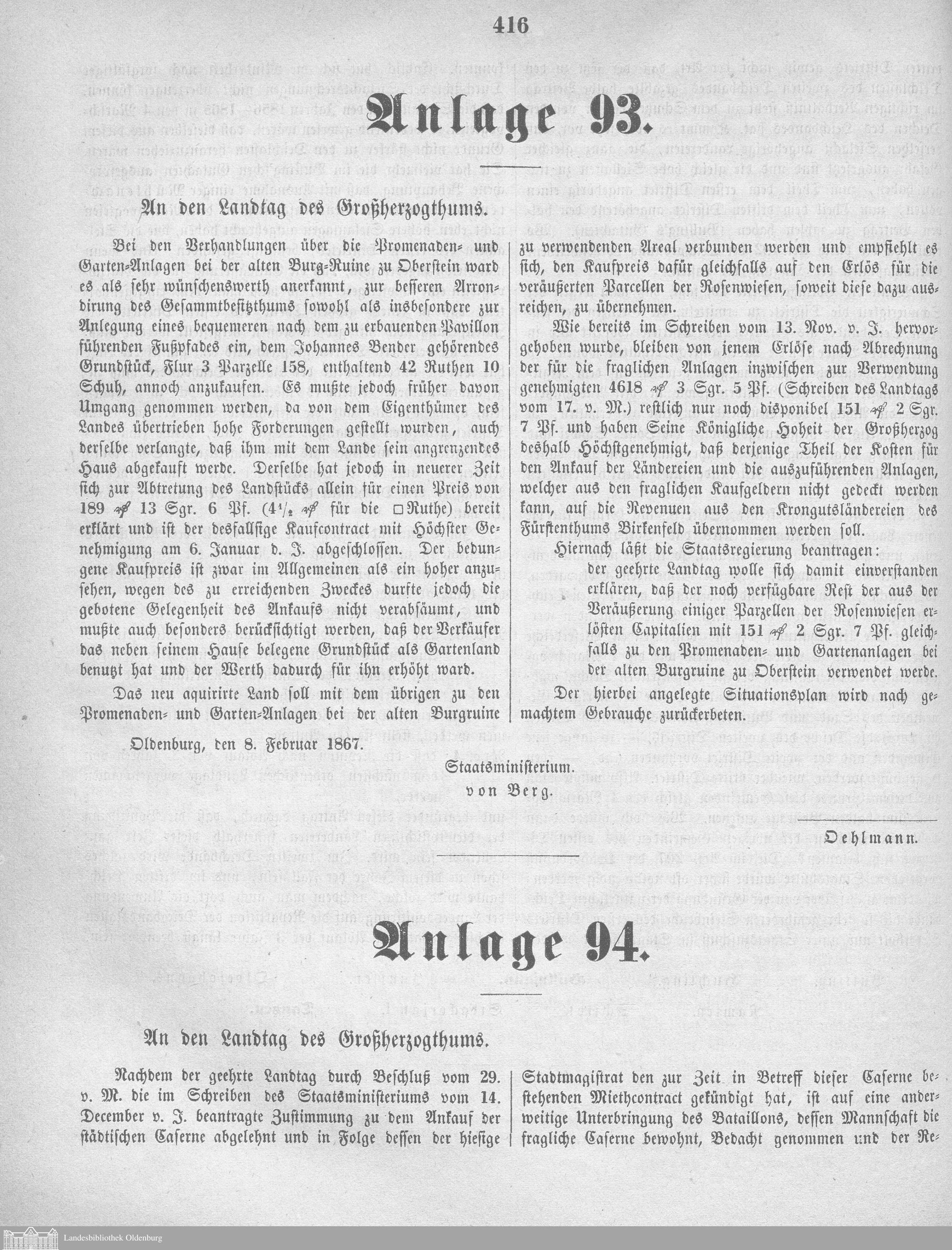 Verhandlungen der ... Versammlung des ... Landtags des Freistaats Oldenburg / Anlagen zu den Niederschriften und Berichten / Anlagen zu den Protokollen und Berichten