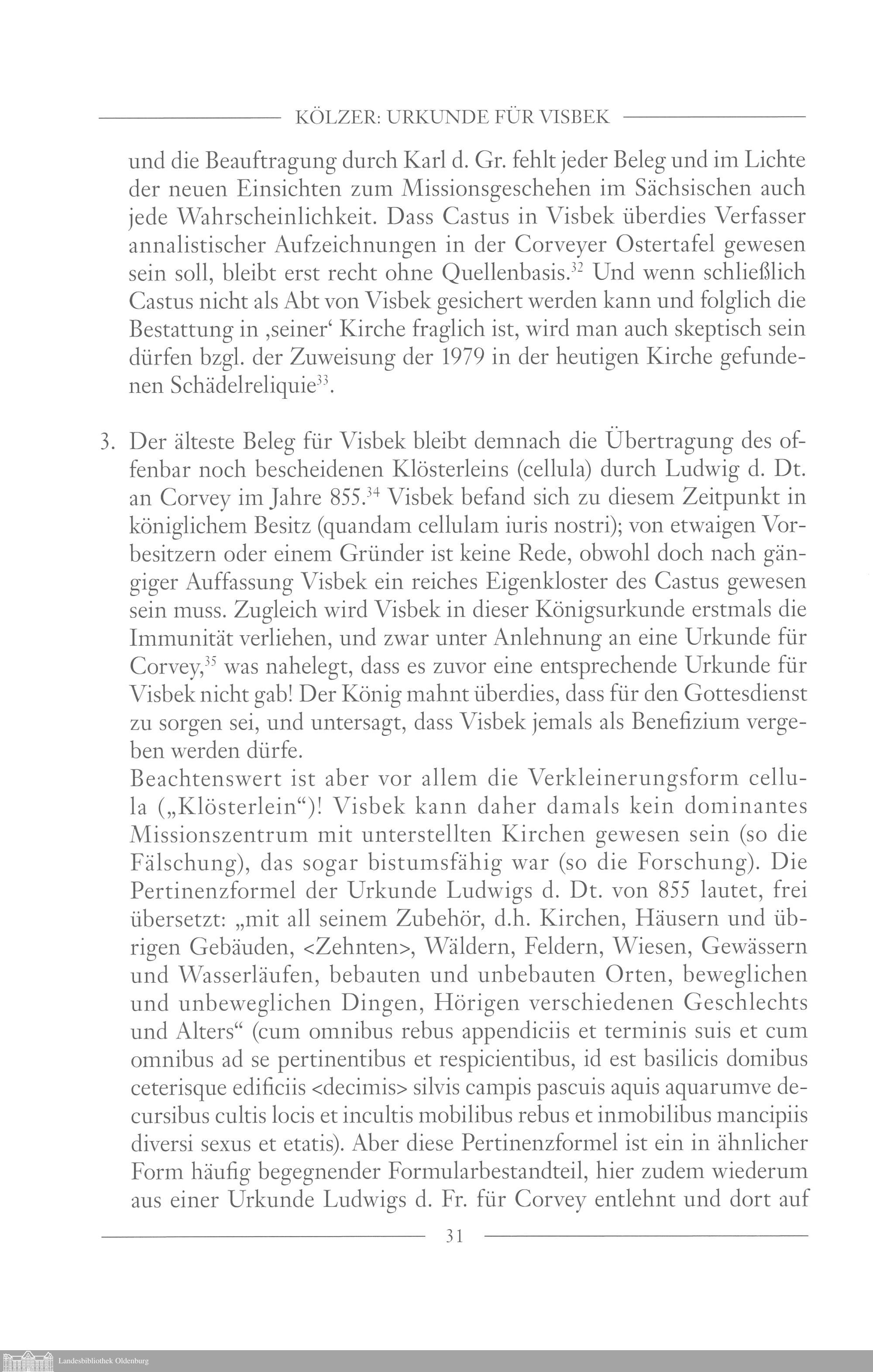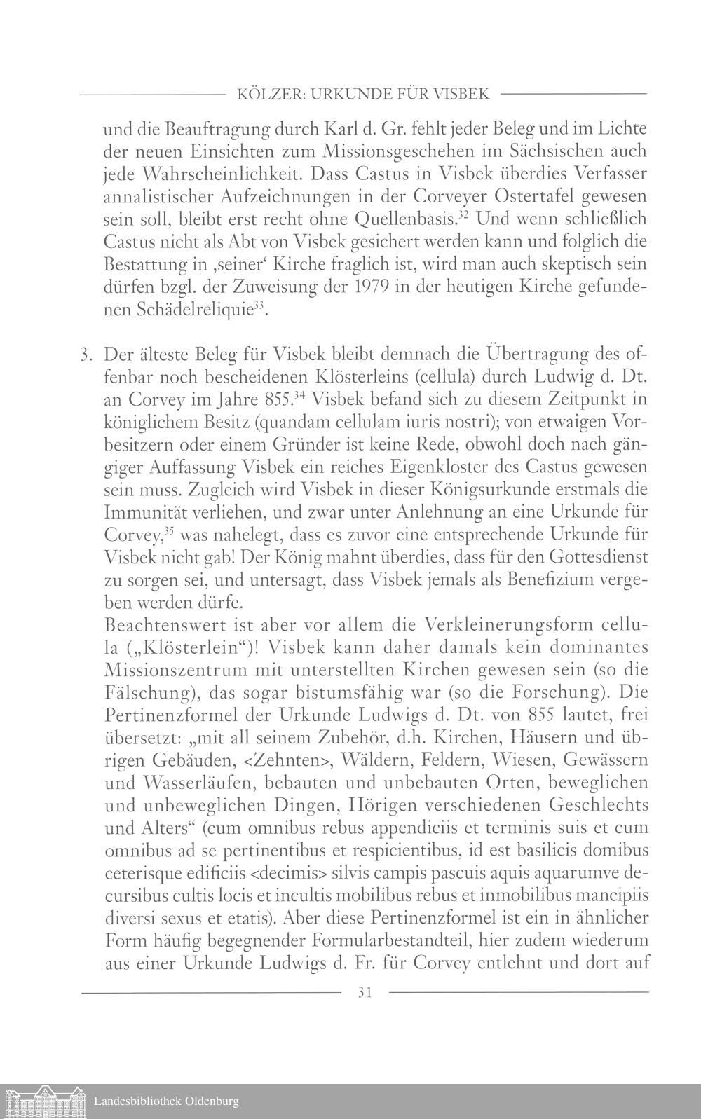Theo Kölzer: Ludwigs des Frommen Urkunde für Visbek (819?) und die Etablierung kirchlicher...
