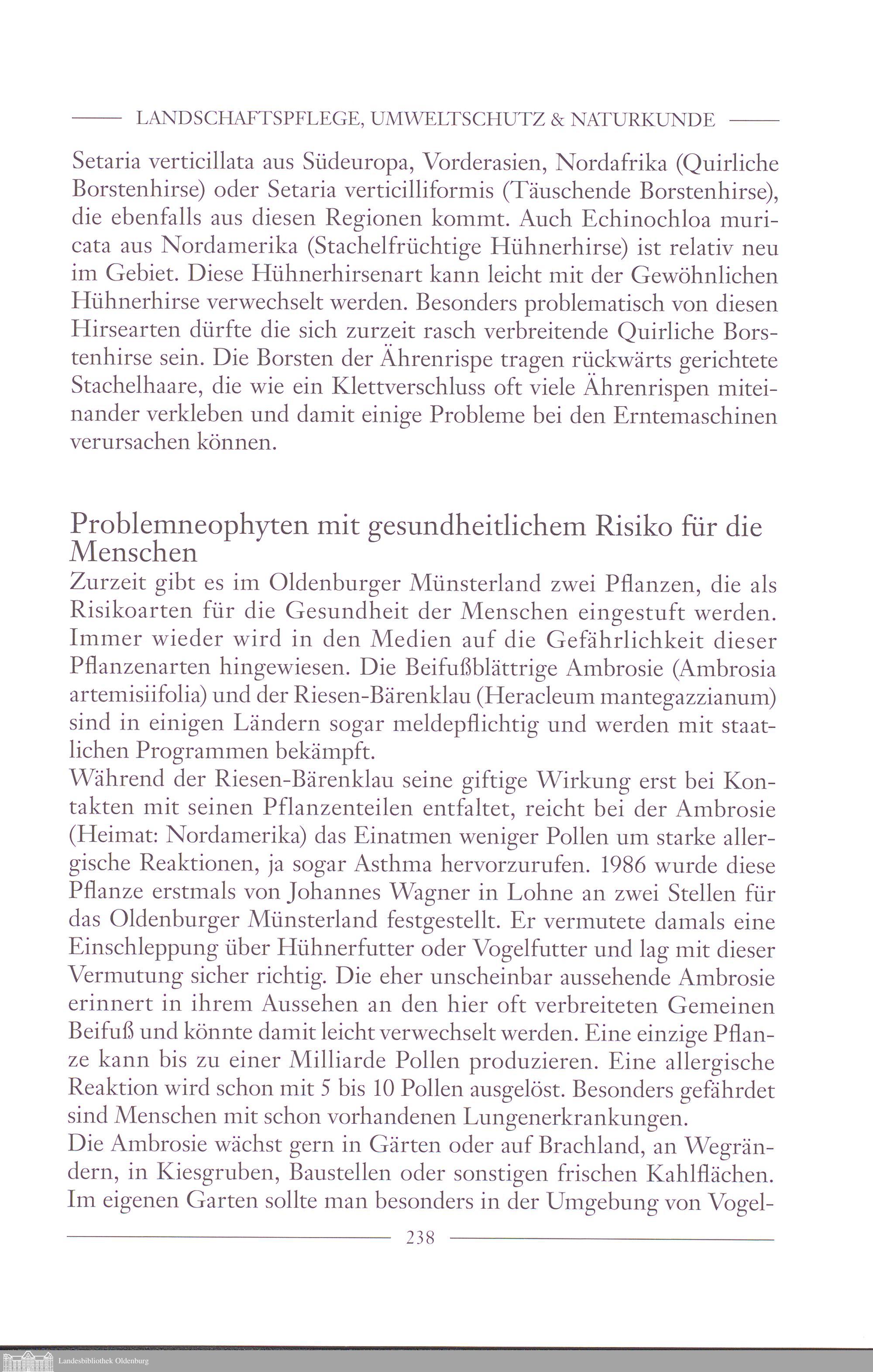 Franz Hericks: Neophyten im Oldenburger Münsterland