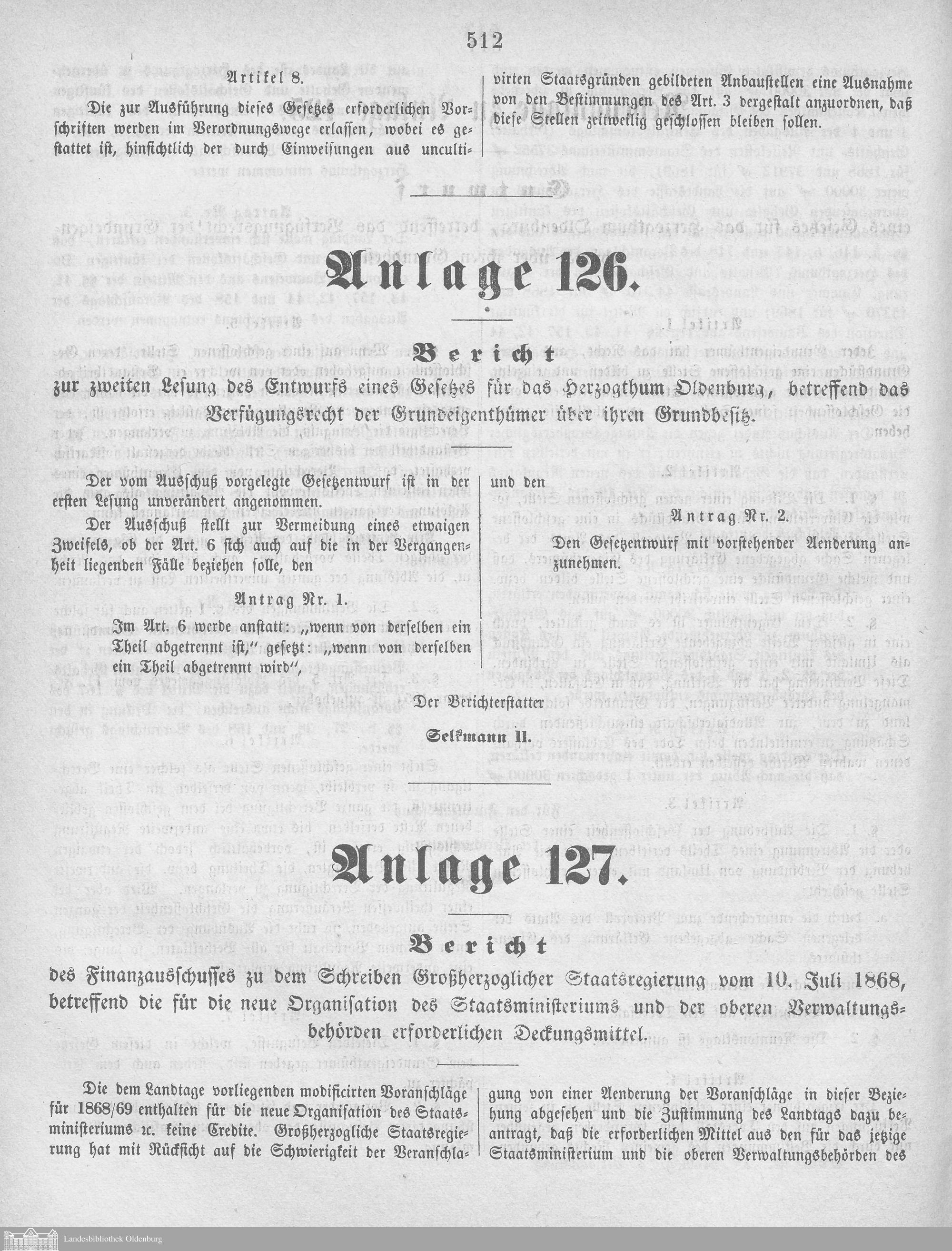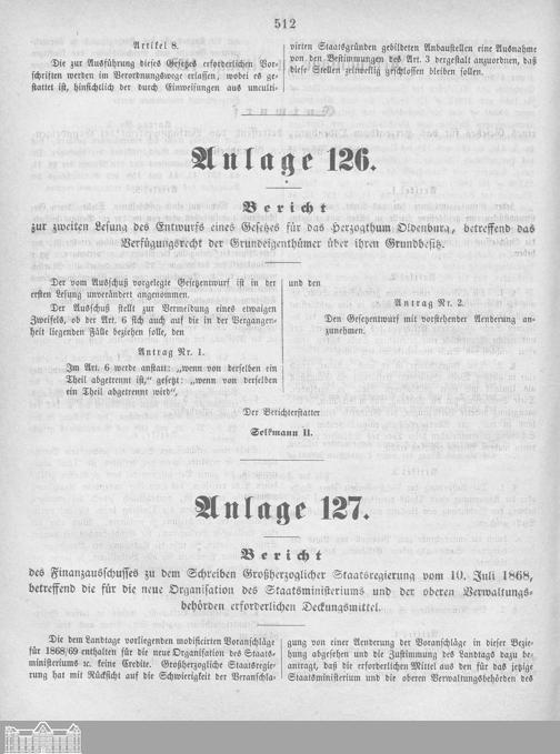 Verhandlungen der ... Versammlung des ... Landtags des Freistaats Oldenburg / Anlagen zu den Niederschriften und Berichten / Anlagen zu den Protokollen und Berichten