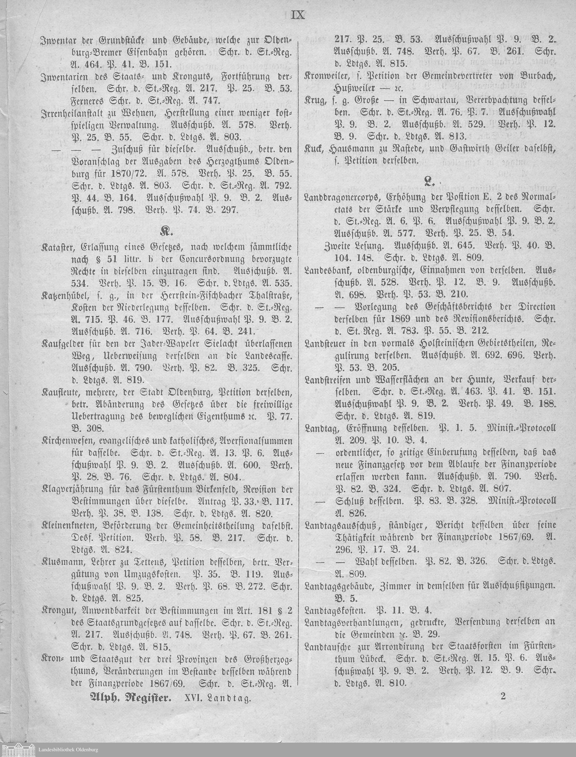 Verhandlungen des ... Allgemeinen Landtags des Großherzogtums Oldenburg / Alphabetisches Register