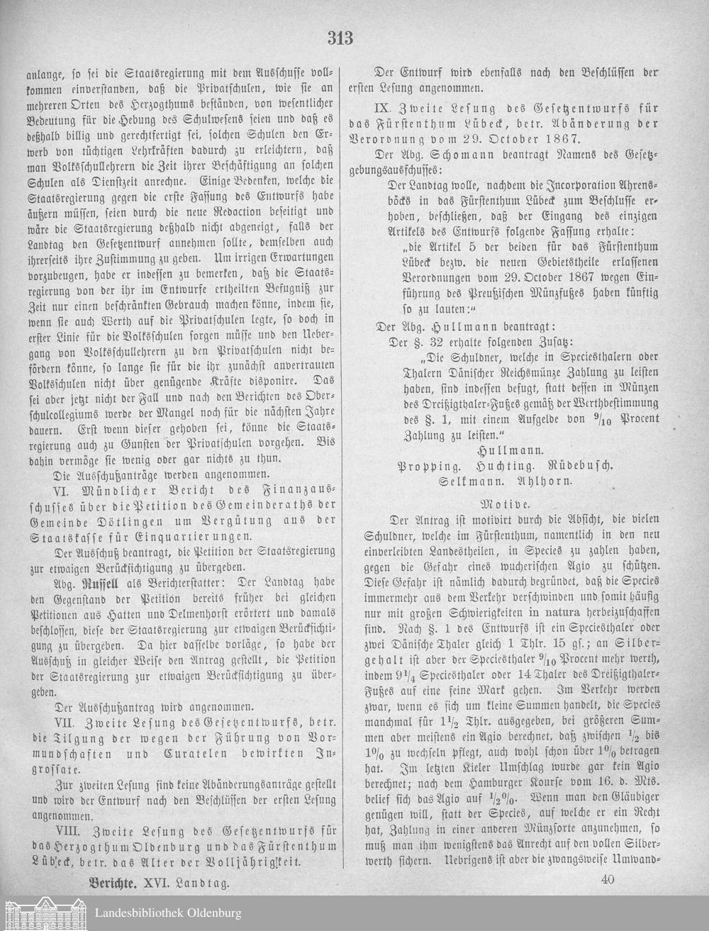 Verhandlungen des ... Allgemeinen Landtags des Großherzogtums Oldenburg / Berichte