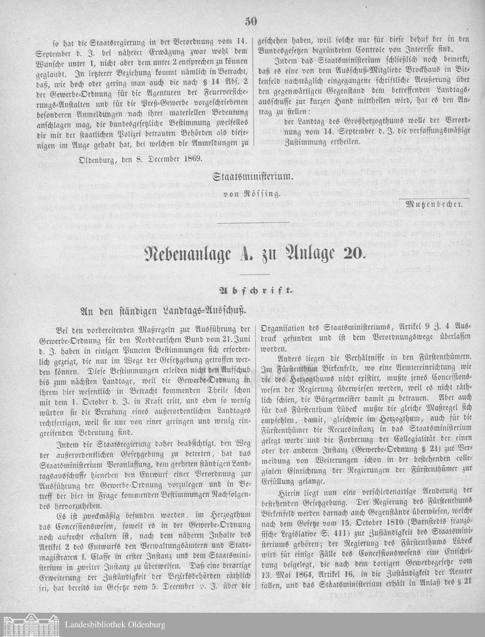 Verhandlungen der ... Versammlung des ... Landtags des Freistaats Oldenburg / Anlagen zu den Niederschriften und Berichten / Anlagen zu den Protokollen und Berichten